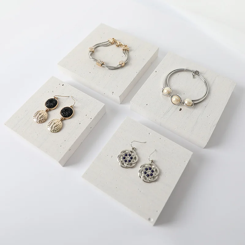 / High-End White Marble Geometric Stone Jewelry Display Stand Shop Earrings Necklace Ring Storage Display Set