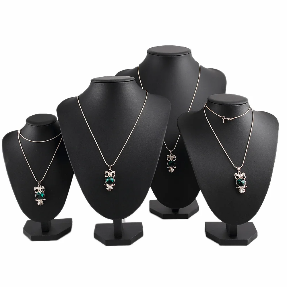 High-grade Black Leather V-shaped Model Portrait Necklace Rack Jewelry Display