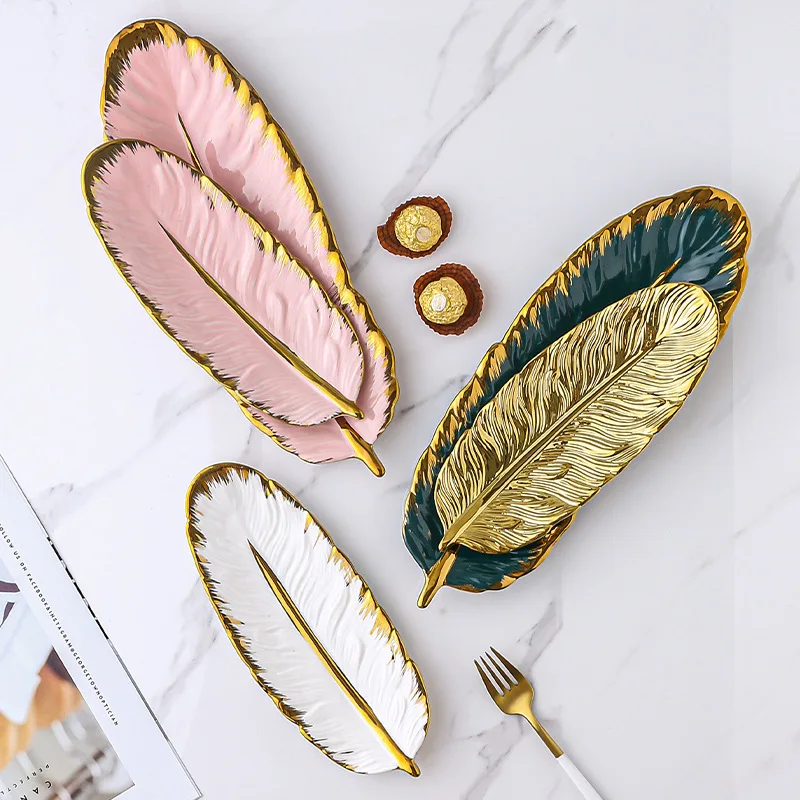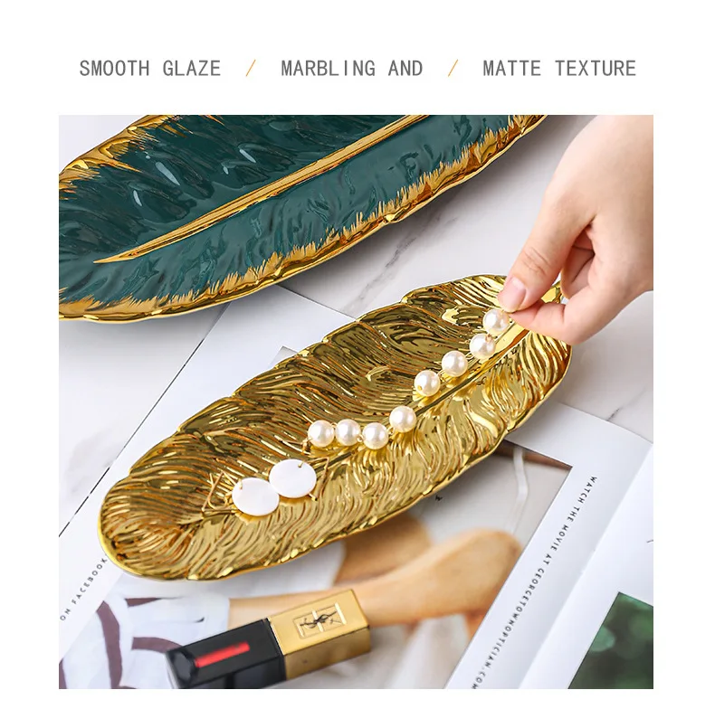 / Hot Sale Shop Display Props Printed Golden Edge Ceramic Ring Trinket Dish Jewelry Tray
