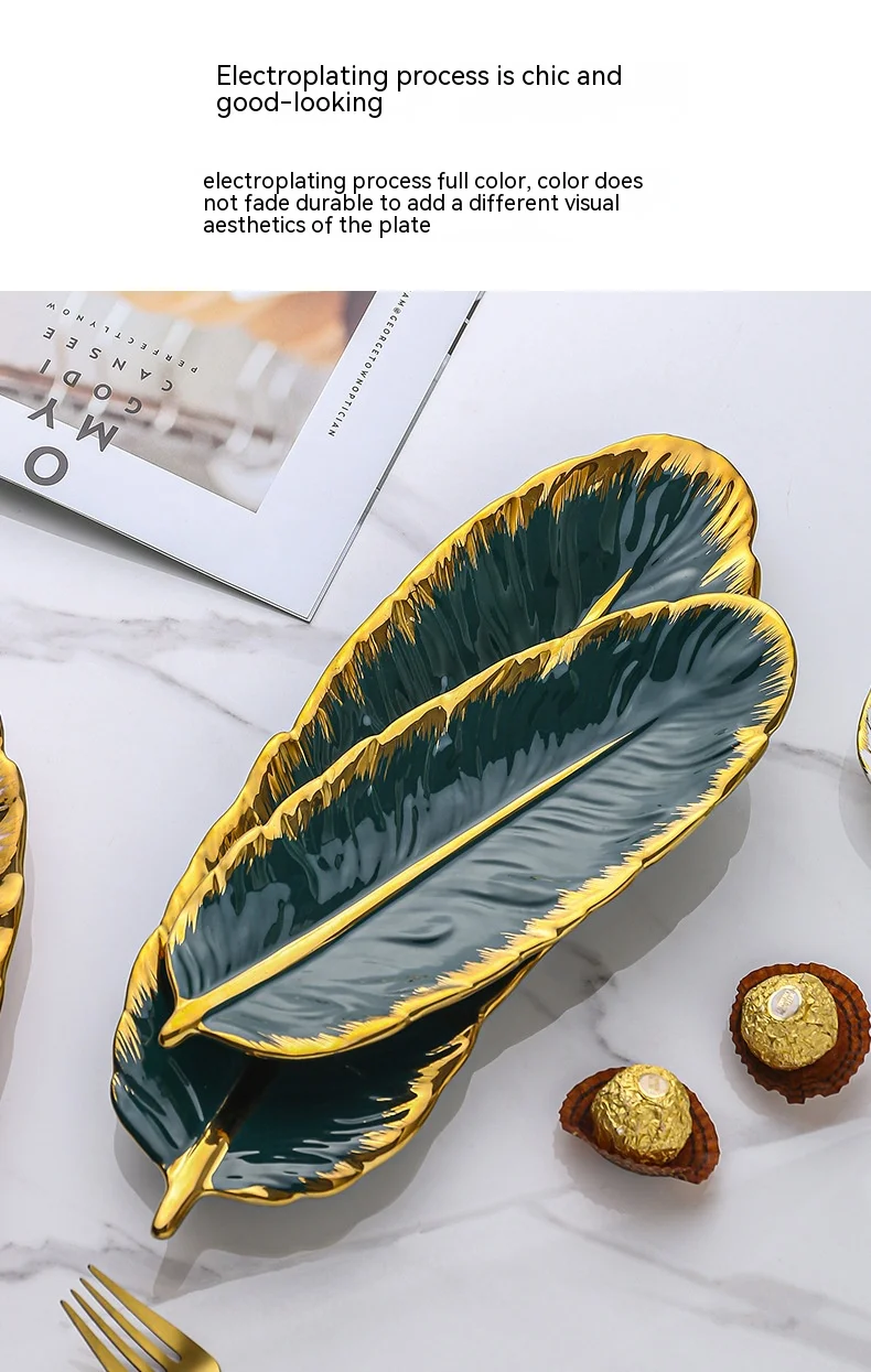 Hot Sale Shop Display Props Printed Golden Edge Ceramic Ring Trinket Dish Jewelry Tray