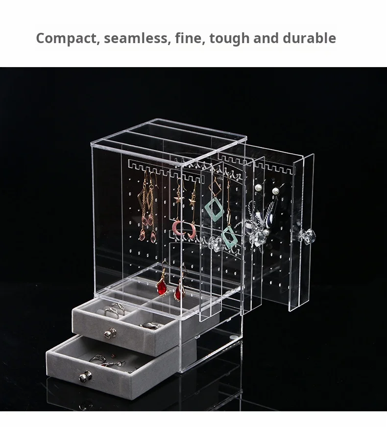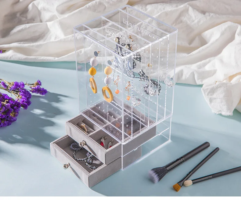 Large-capacity Jewelry Earring Storage Rack Transparent Acrylic Drawer Stud Earrings Dustproof Holder