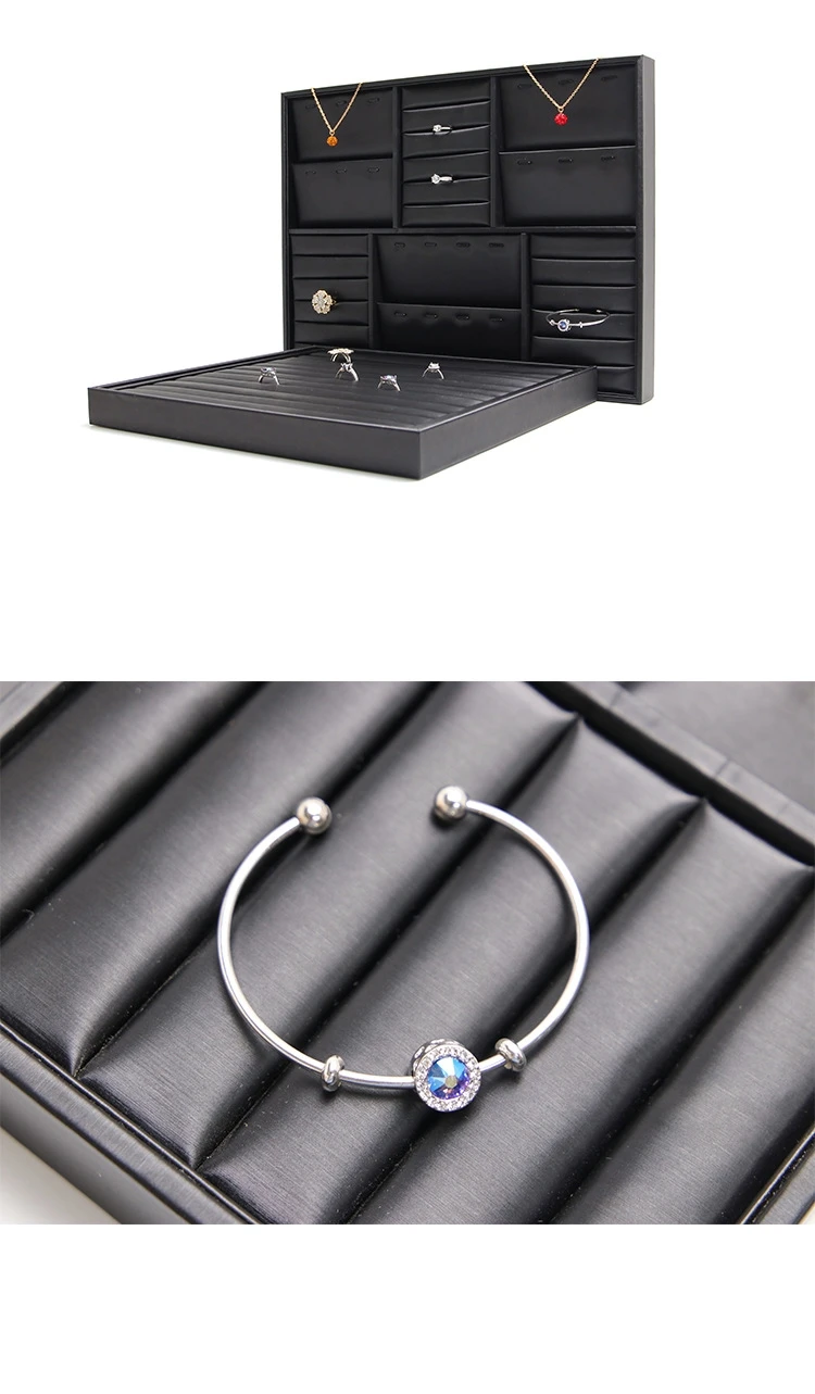 / Luxury Black Jewelry Display Tray Set Earring Jewelry Packaging Leather Tray Organizer Jewelry Tray for Exhibition