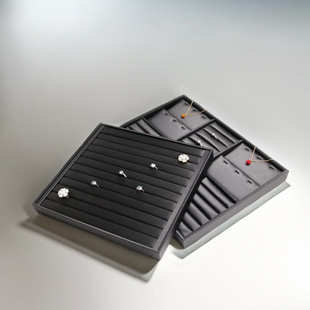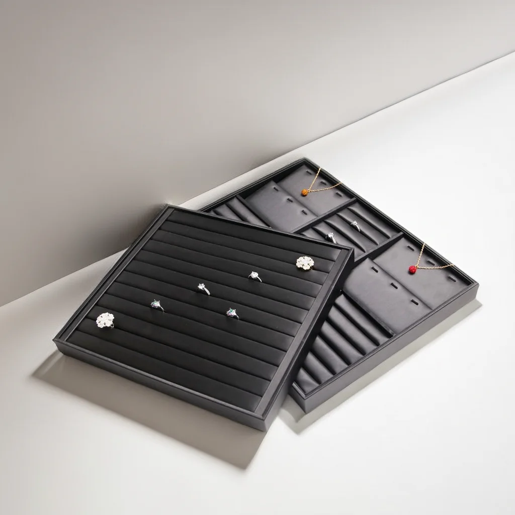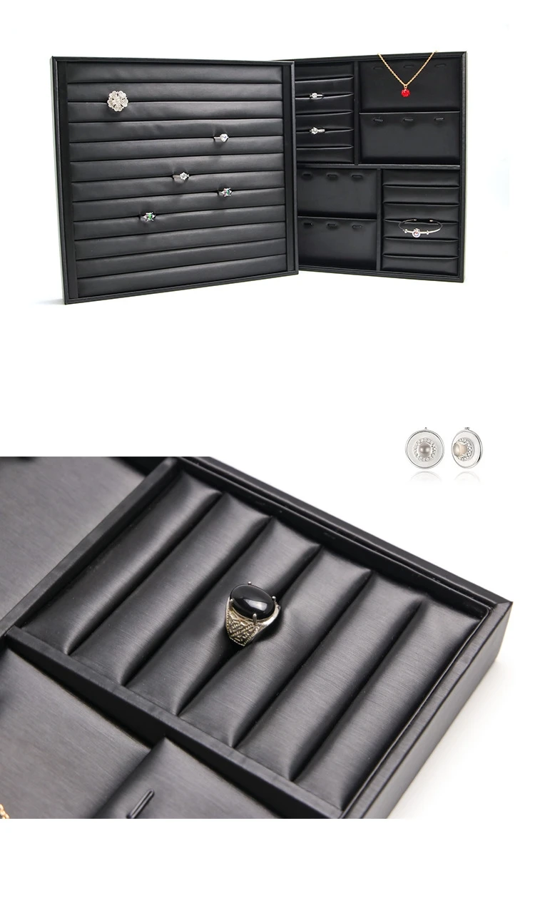 Luxury Black Jewelry Display Tray Set Earring Jewelry Packaging Leather Tray Organizer Jewelry Tray for Exhibition