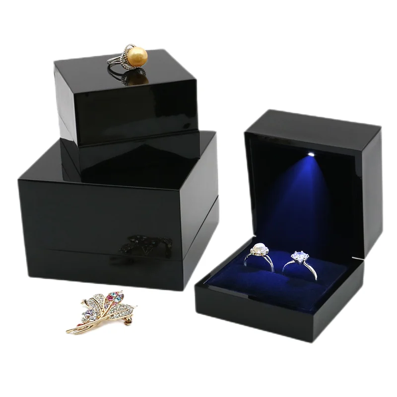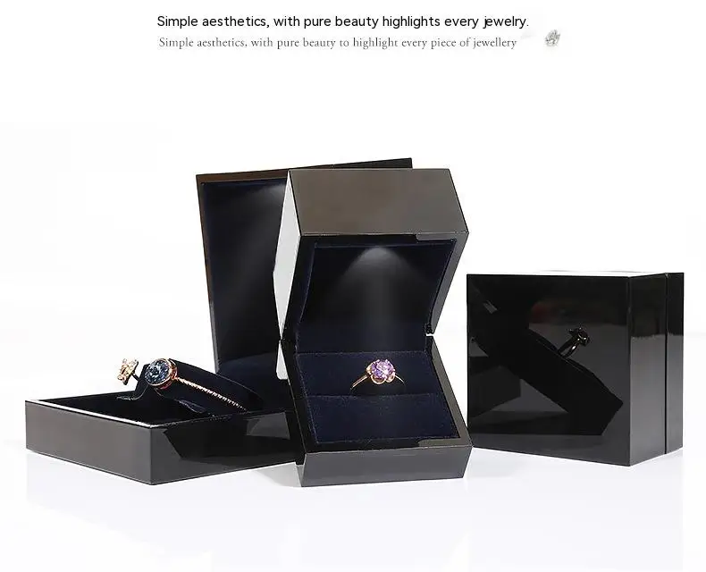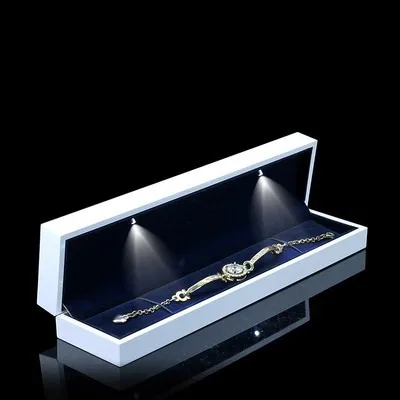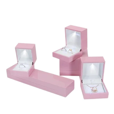 / Luxury Custom Logo PU Leather Jewelry Box LED Light Gift Packaging for Necklace Earrings Bracelet