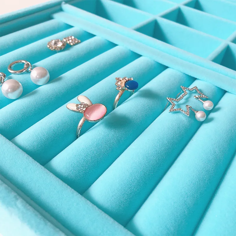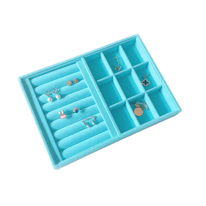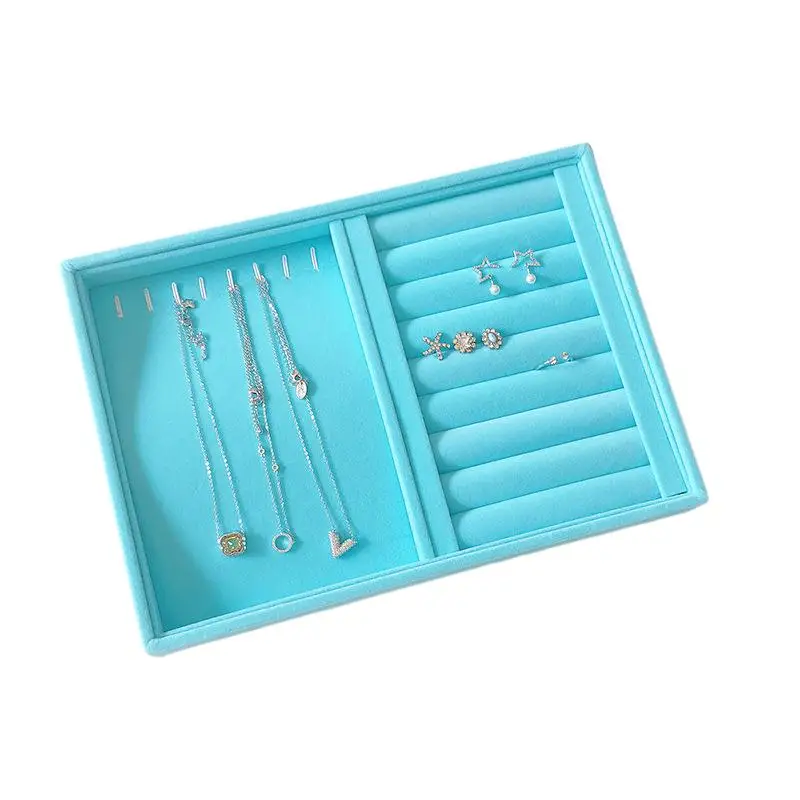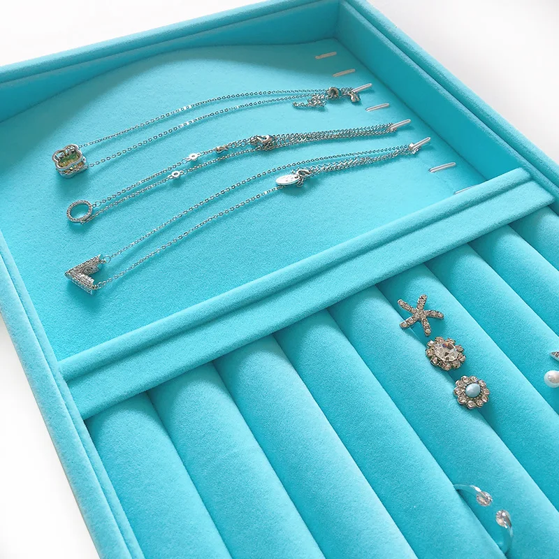 Medium 28*20 Blue Plush Jewelry Tray Accessories Earrings Ear Stud Necklace Bracelet Storage Tray