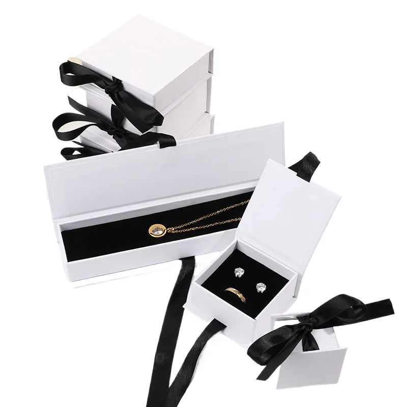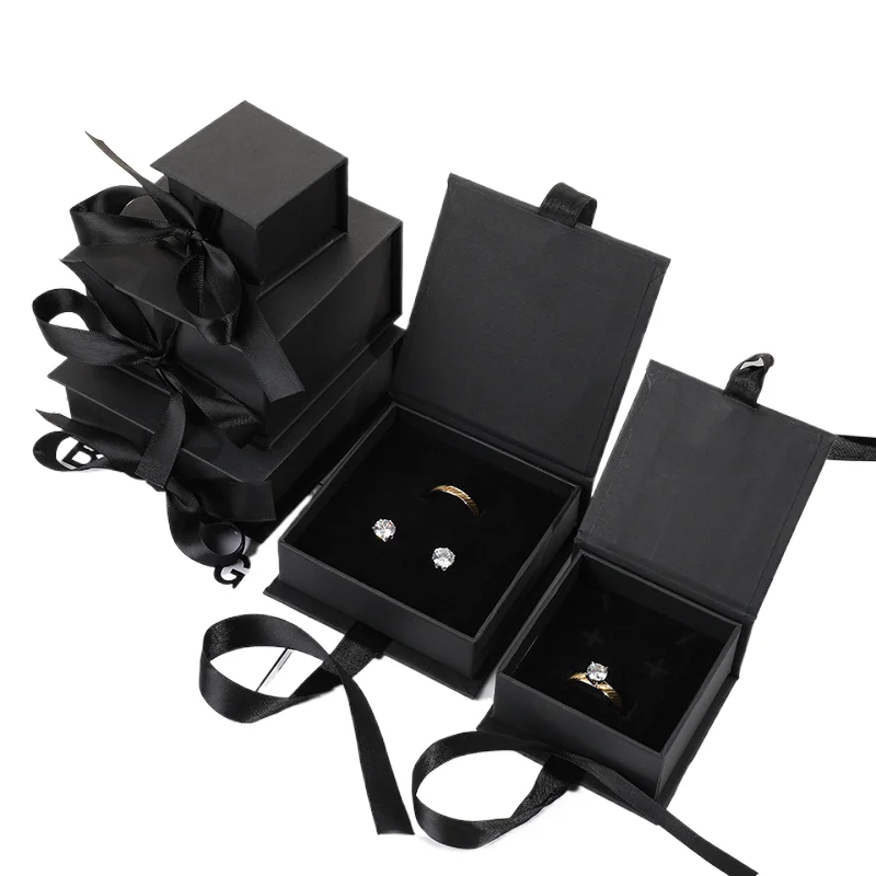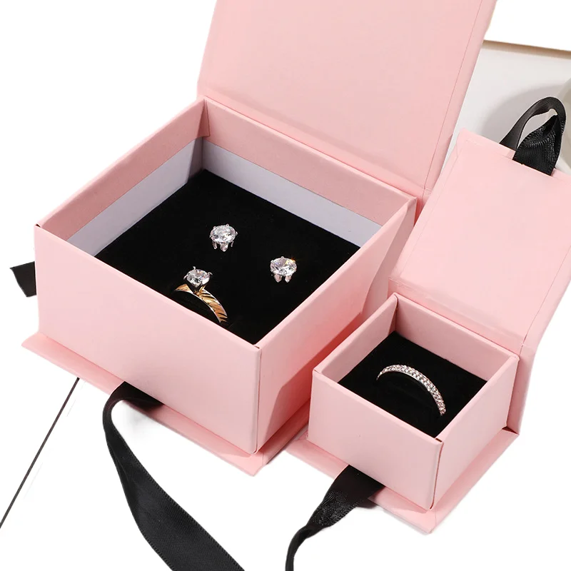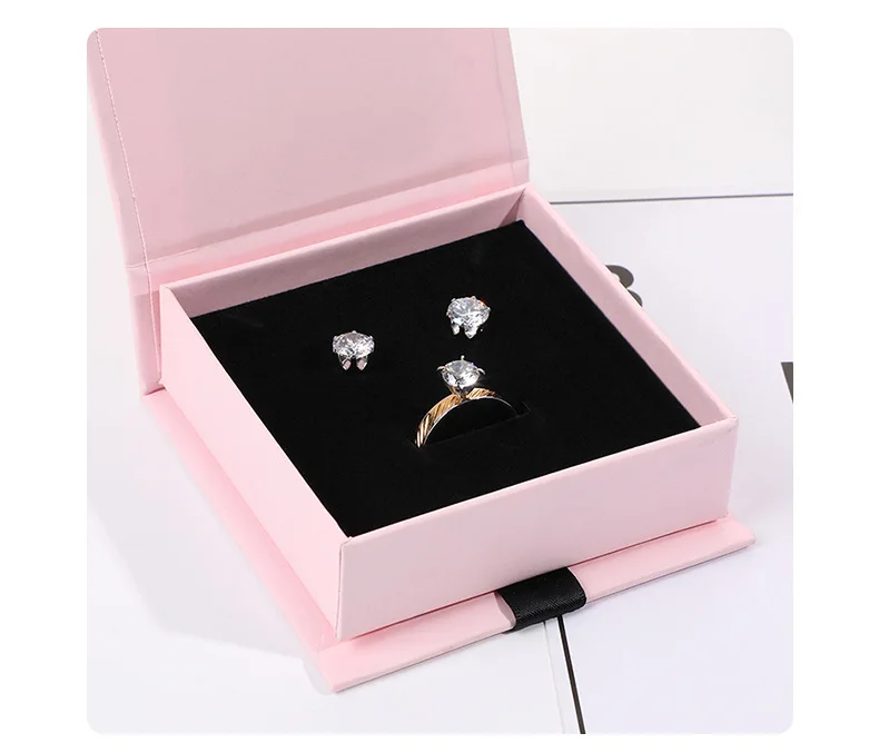 MOQ100 Custom Logo Ribbon Flip Vertical Row Storage Jewelry Earrings Gift Box