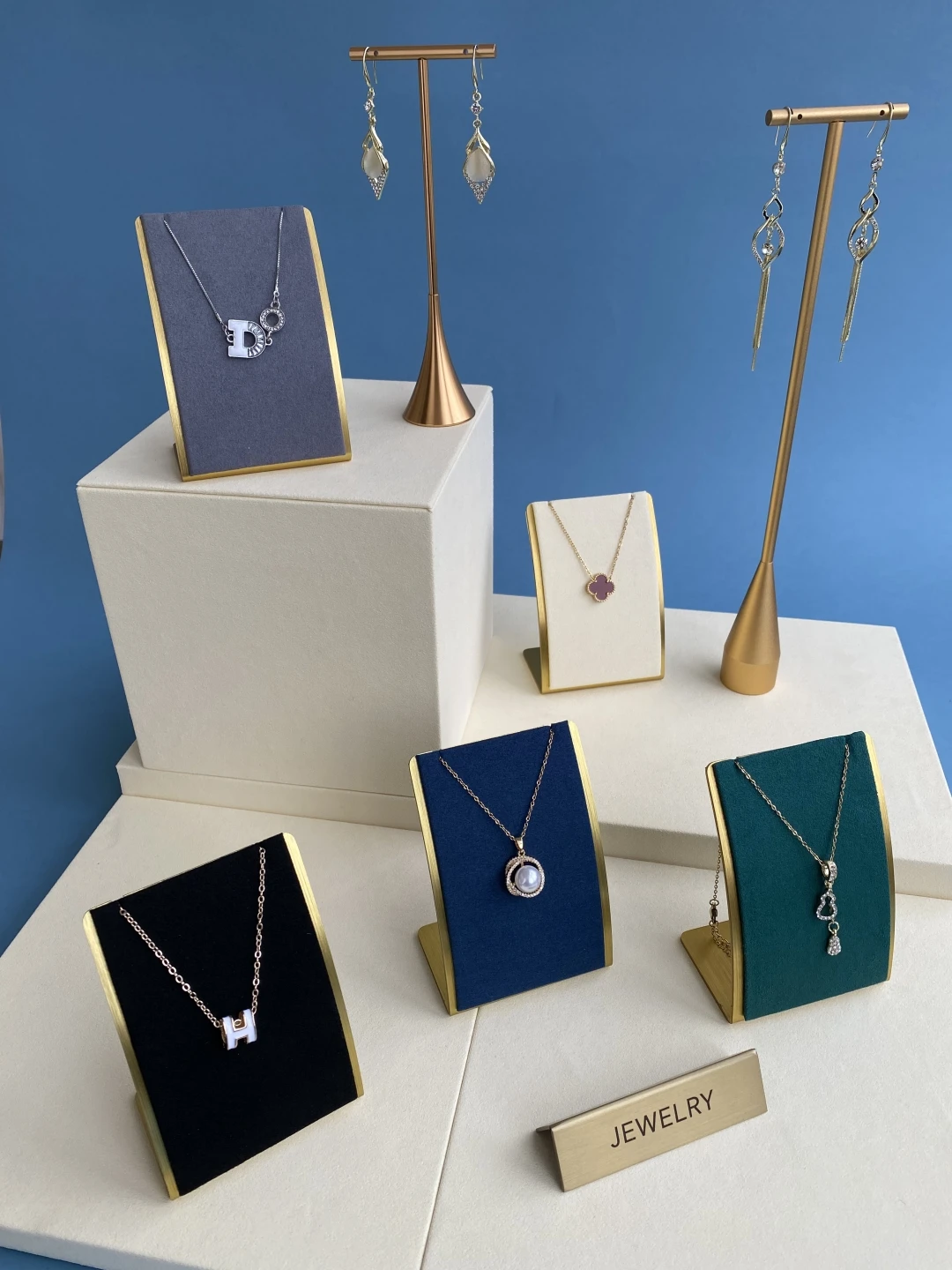 Necklace Pendant Show Shelf Metal Microfiber Black Jewelry Display Props Rack
