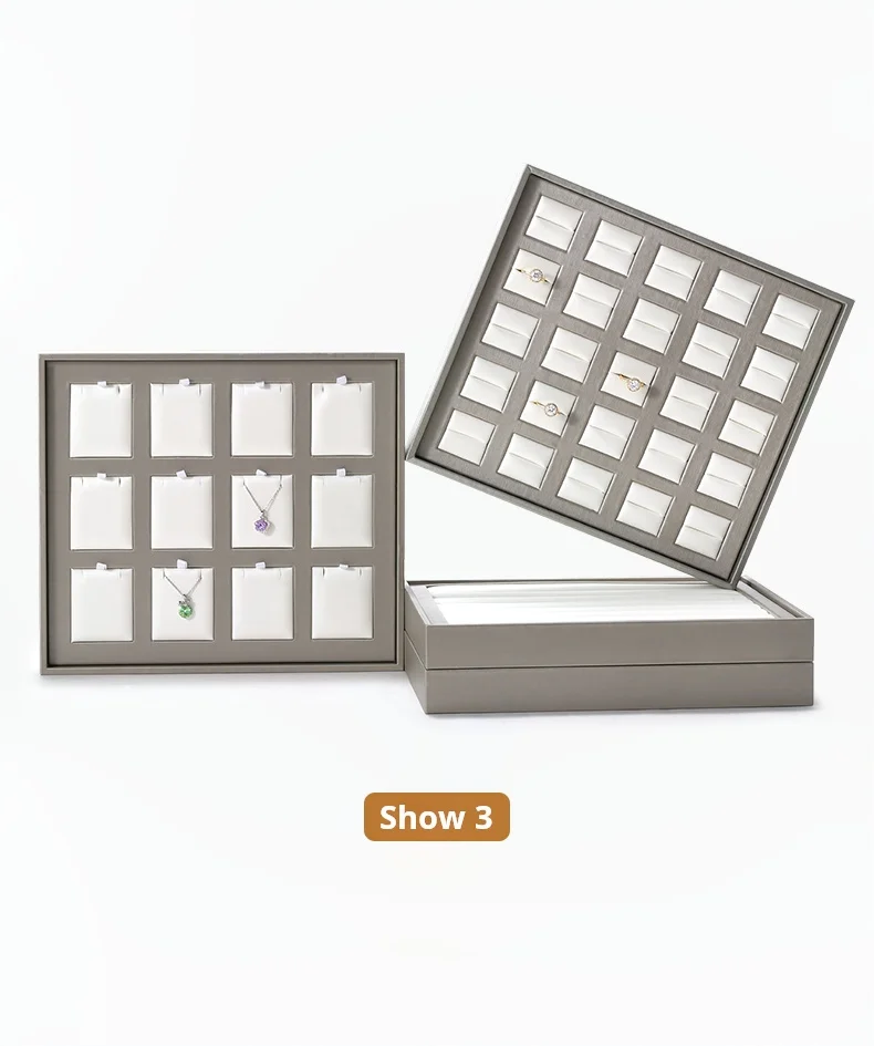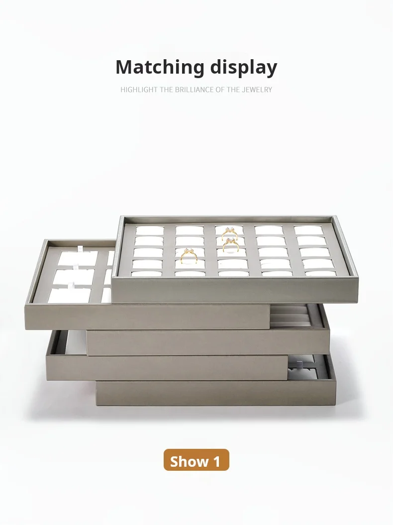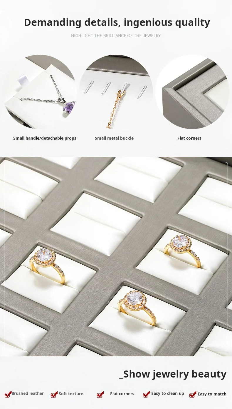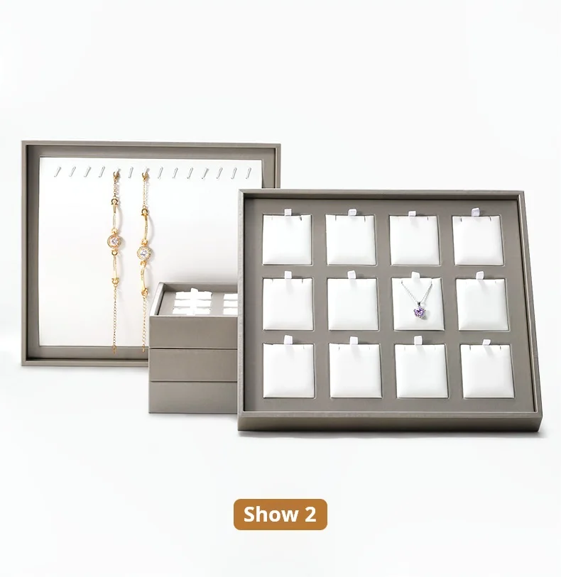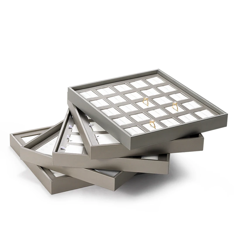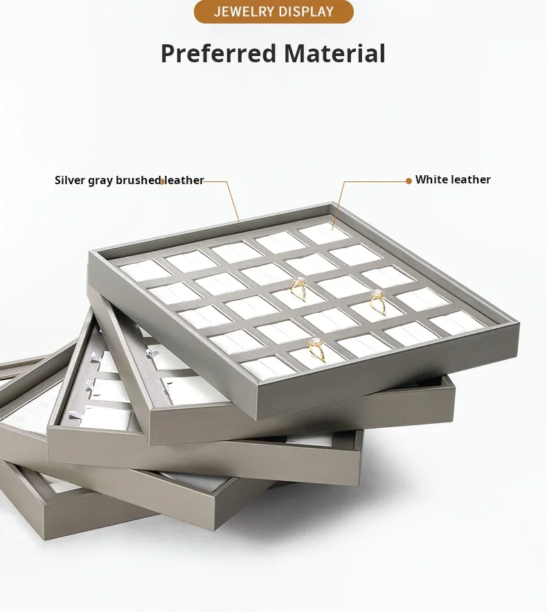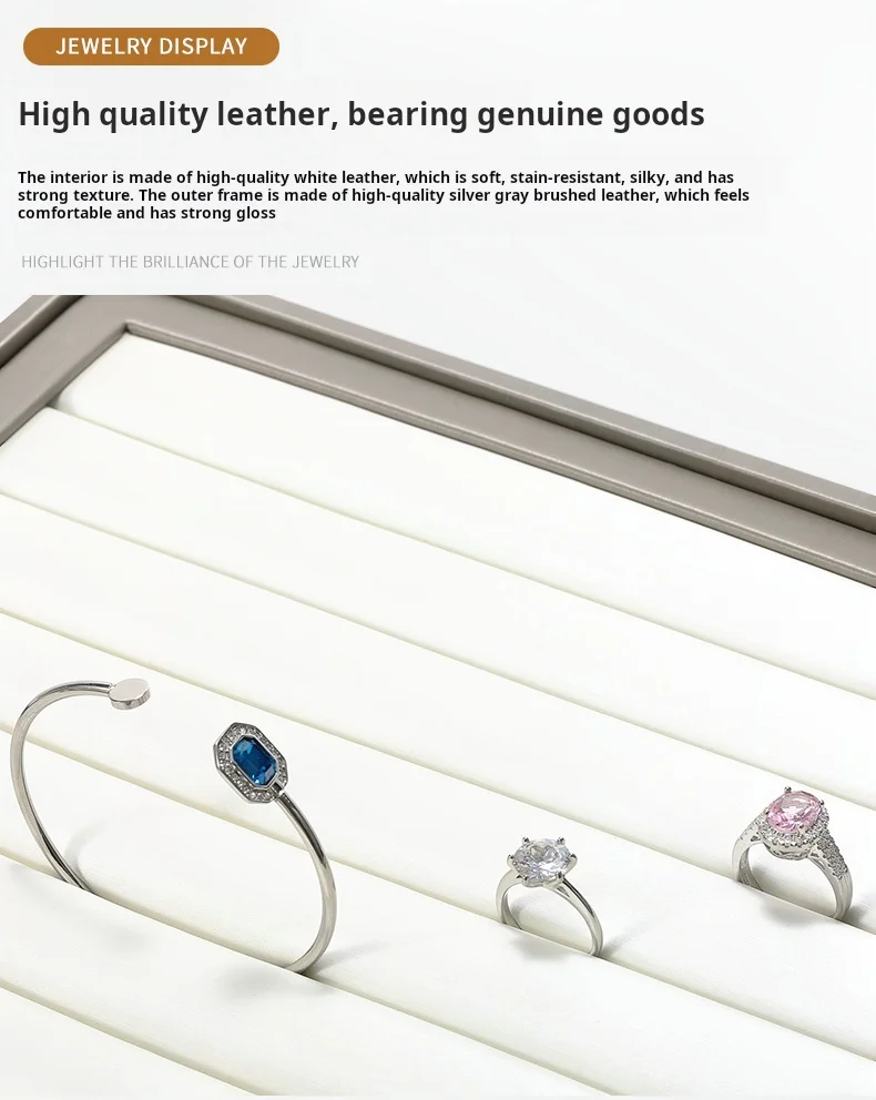 New Arrivals Design Countertop Exhibition Jewellery Serving Tray champagne Pu Leather Jewelry Display Tray