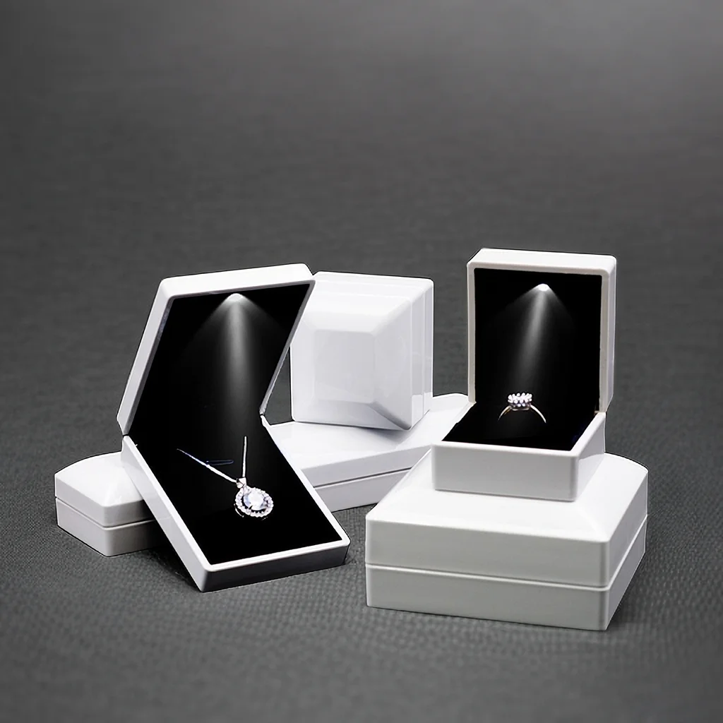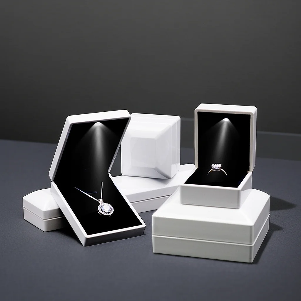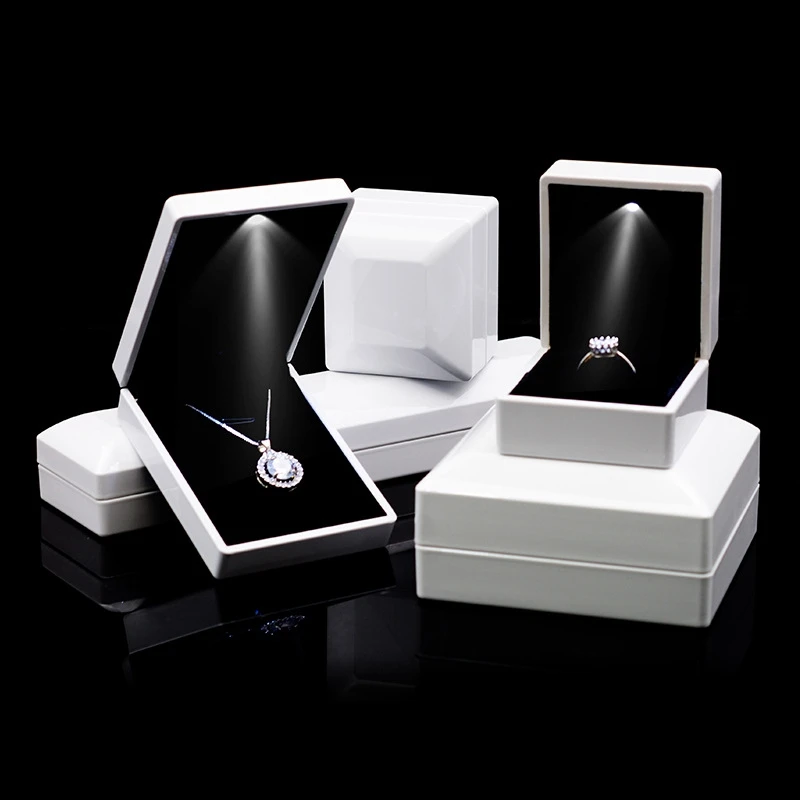 Piano Lacquer Luxury Jewelry Packaging Box LED Light Square Jewelry Box Custom Logo Gift Box for Jewelry