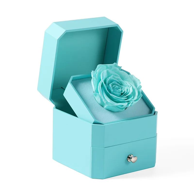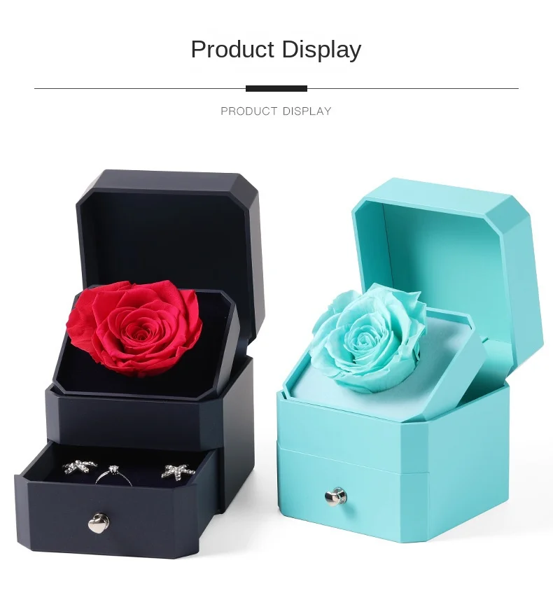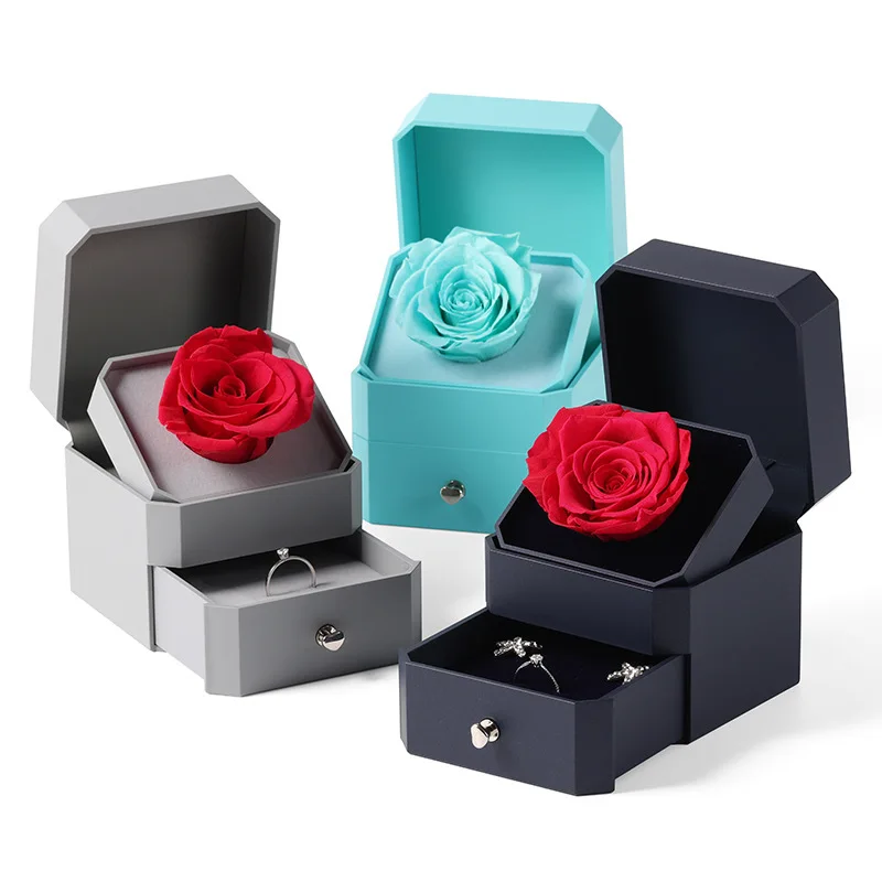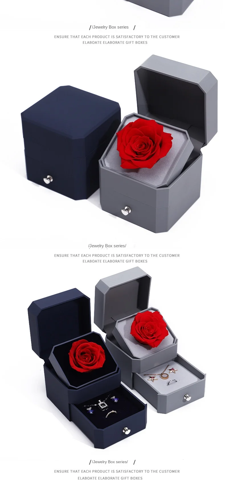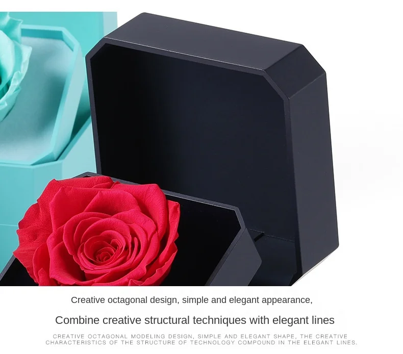 Premium Octagonal Jewelry Box with Preserved Fresh Flowers for Valentine’s Day High-End Drawer Gift Box for Necklaces & Rings