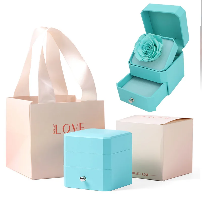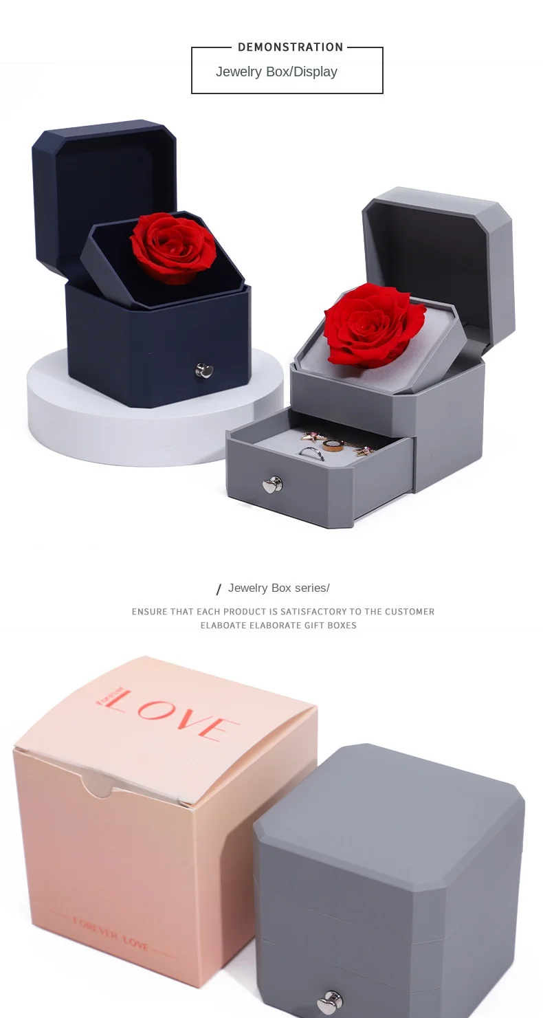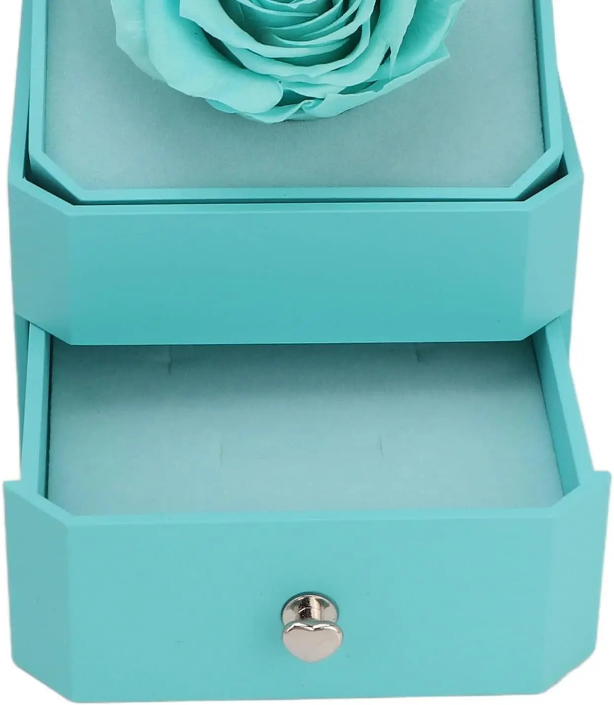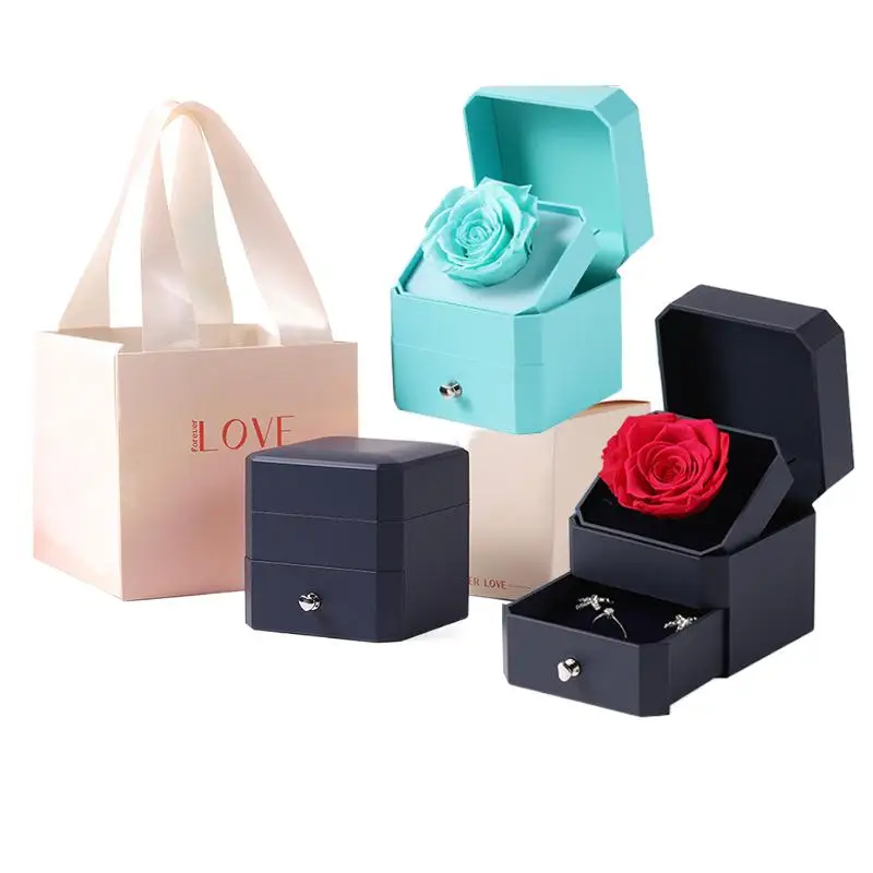 Premium Octagonal Jewelry Box with Preserved Fresh Flowers for Valentine’s Day High-End Drawer Gift Box for Necklaces & Rings