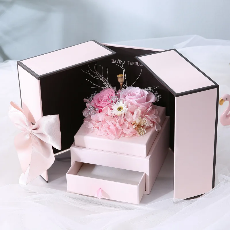 Preserved Fresh Flower Gift Box Necklace Gift Box Pink Double Door Jewelry Box