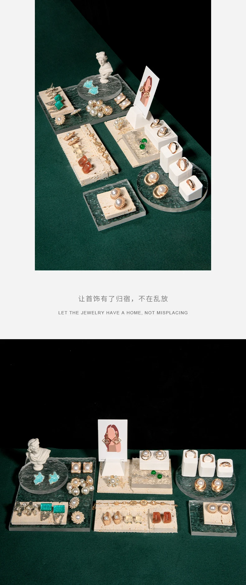 / Professional Customized Natural Stone, Plaster, and Acrylic Mixed and Matched Jewelry Rack Display Set
