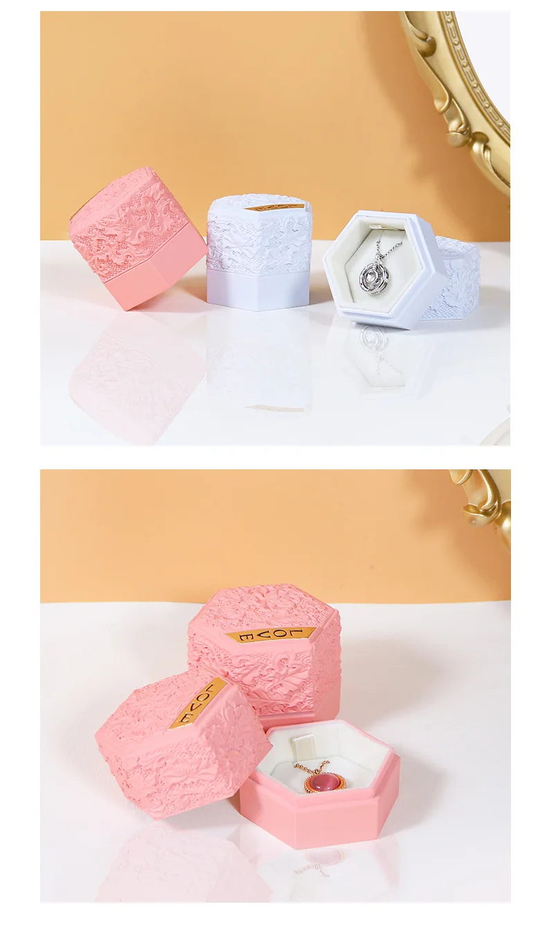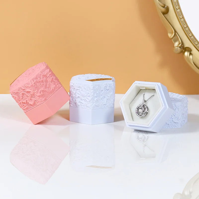 Proposal Embossed Hexagonal Jewellery Box Ring Necklace Jewelry Packing Box