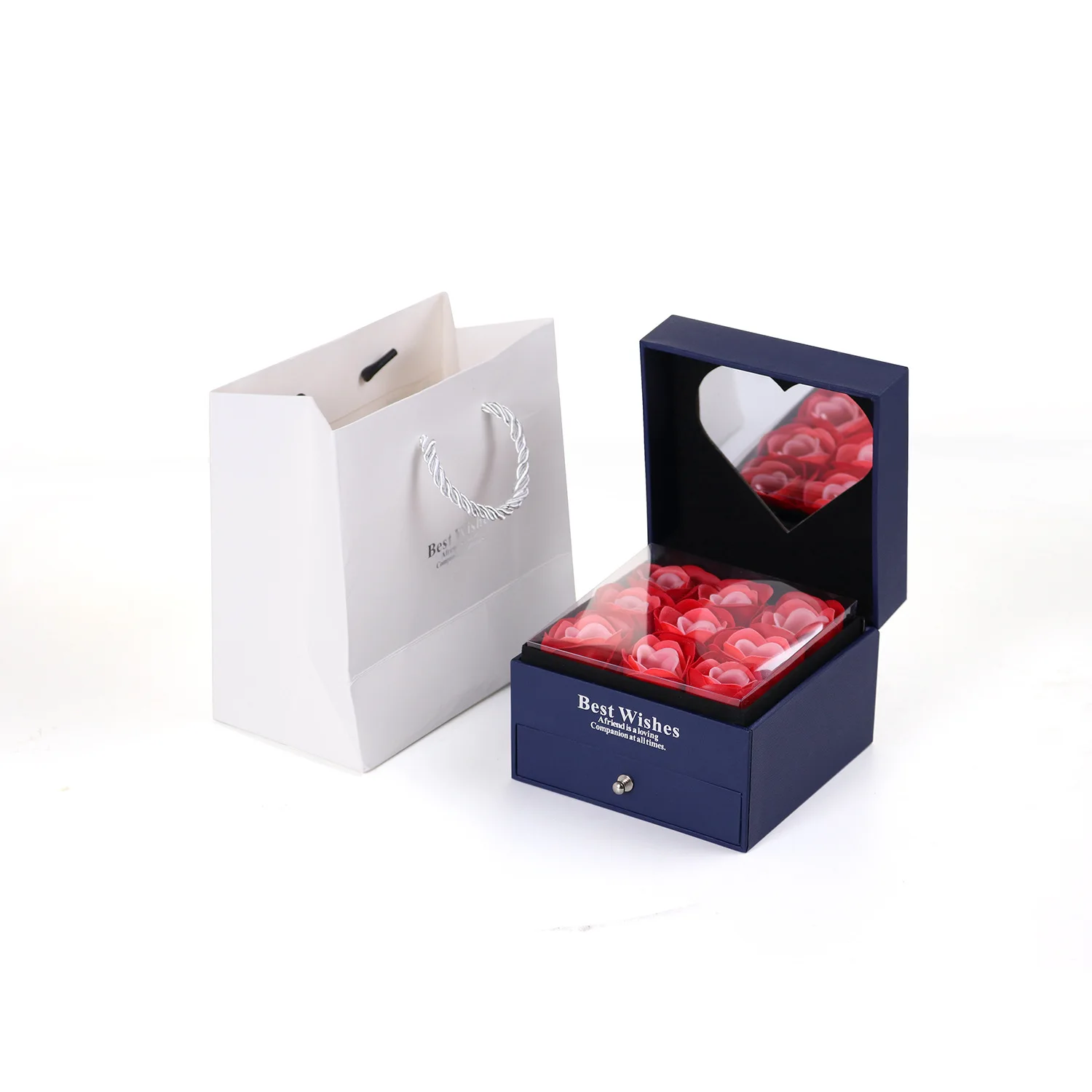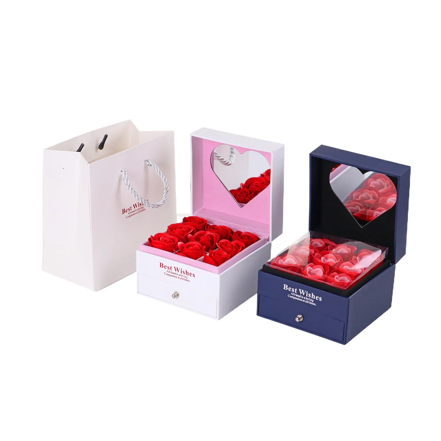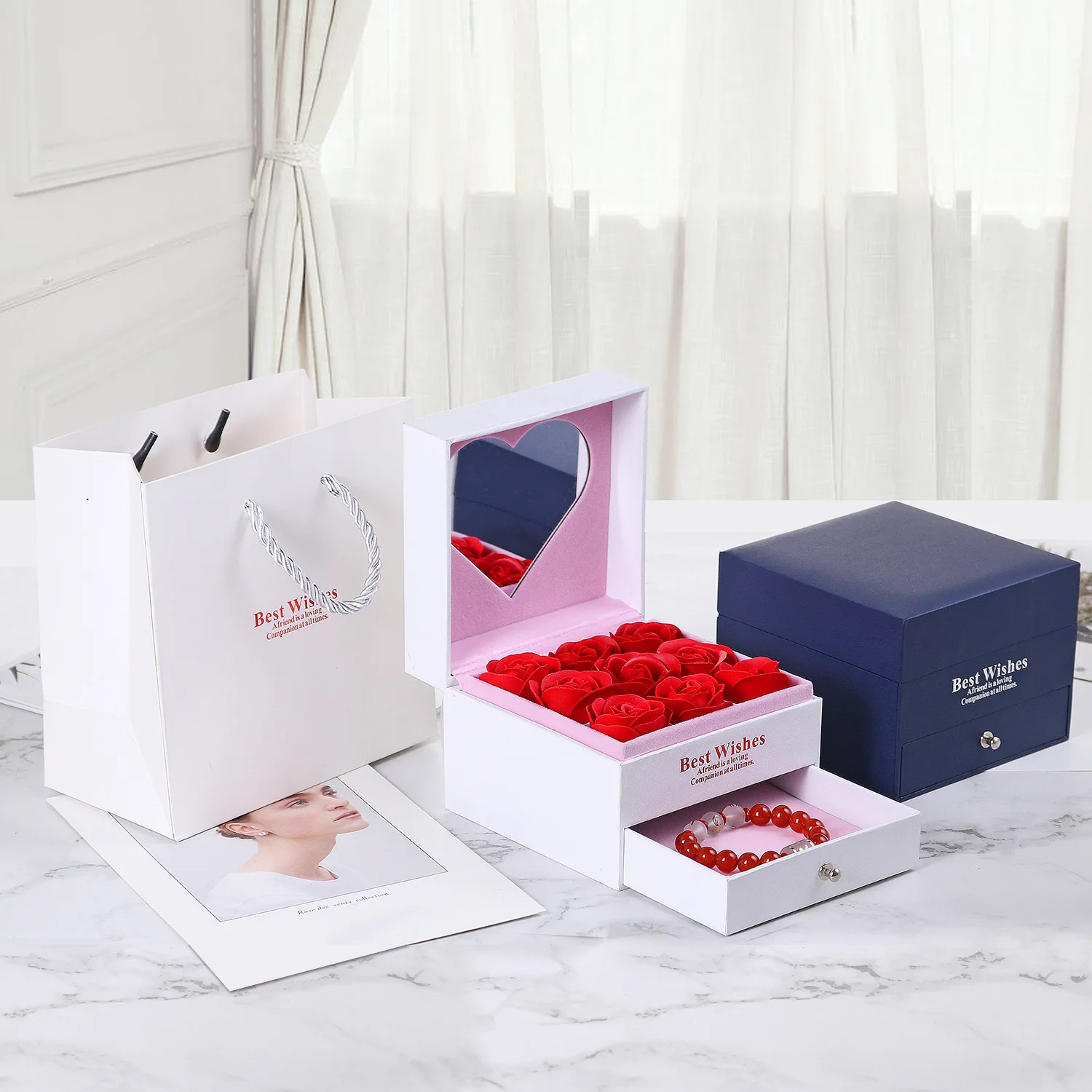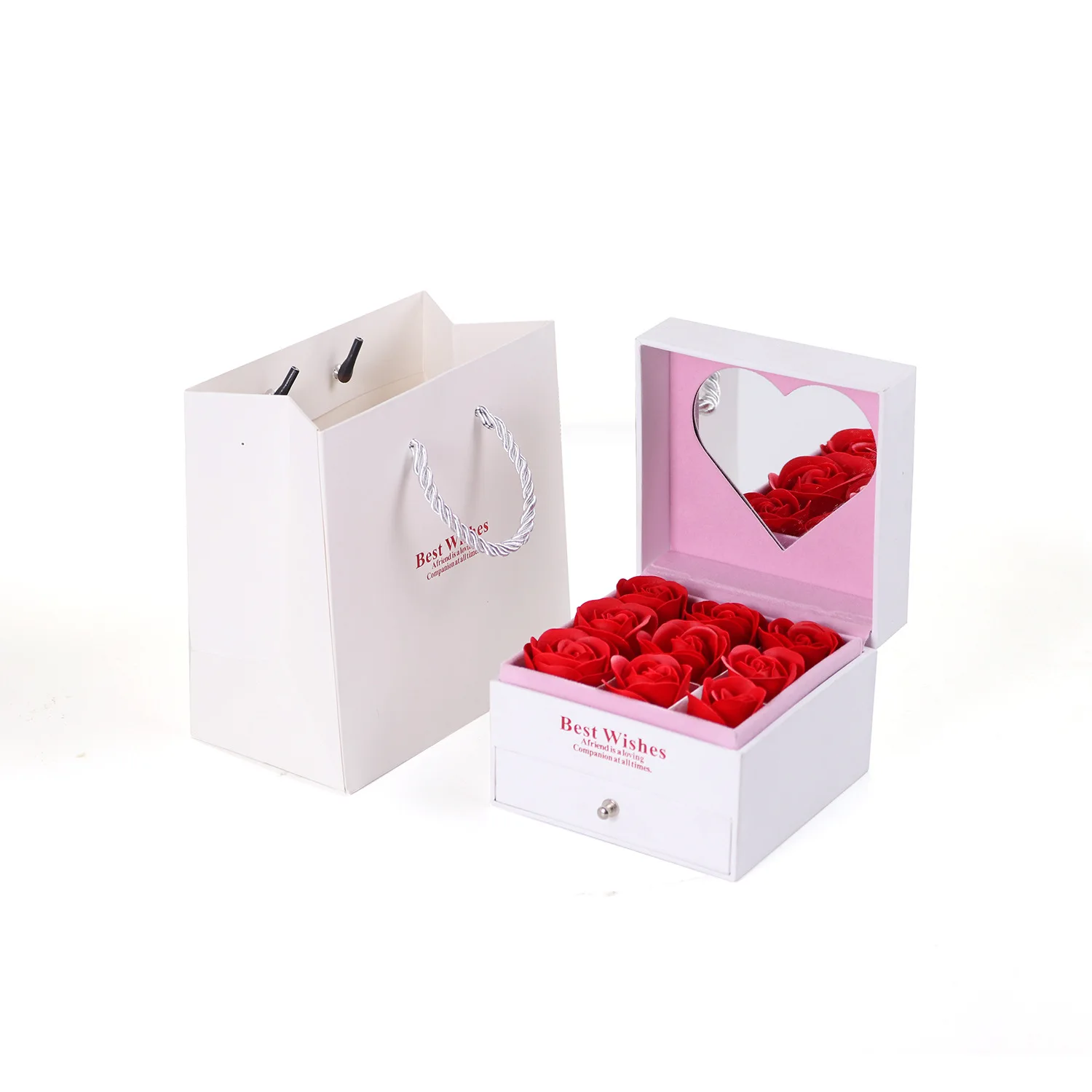 Ready Stock with Heart-shaped Mirror Necklace Box Rose Valentine’s Day Jewelry Box Gift Box Set