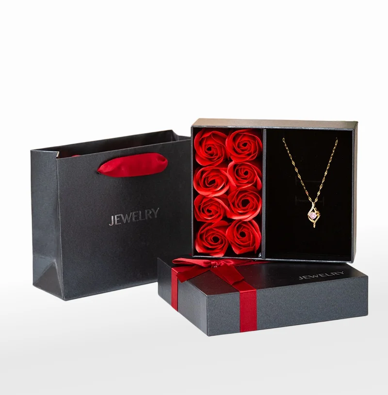 Rose Flower With Window Cardboard Jewelry Magnetic Box Jewelry Gift Box Eternal Rose Jewelry Box