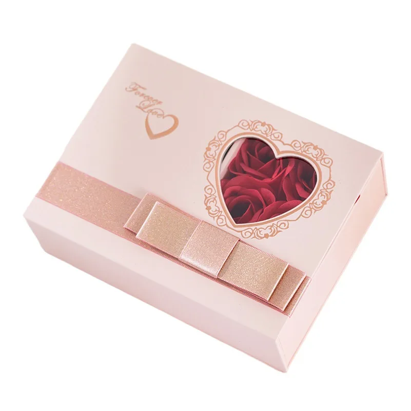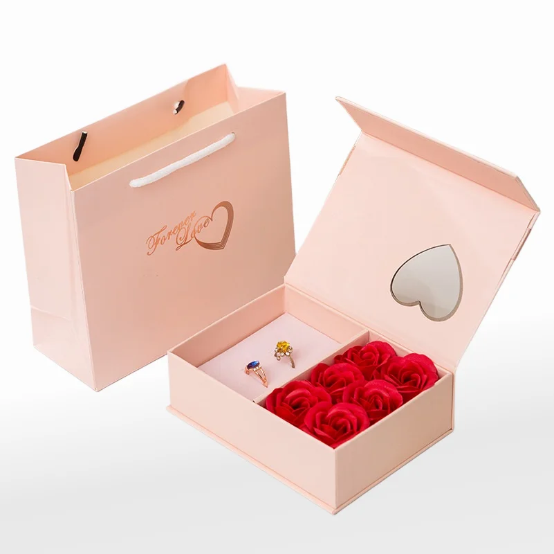/ Rose Flower With Window Cardboard Jewelry Magnetic Box Jewelry Gift Box Eternal Rose Jewelry Box