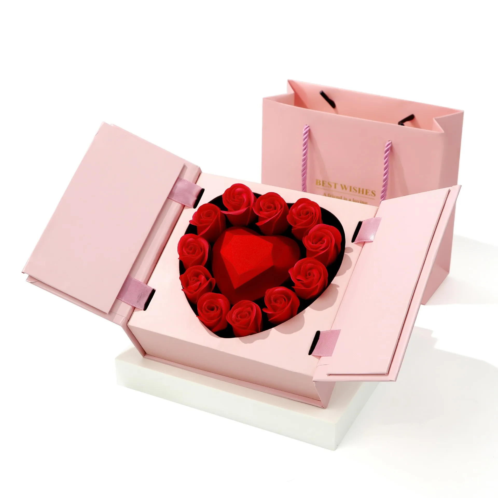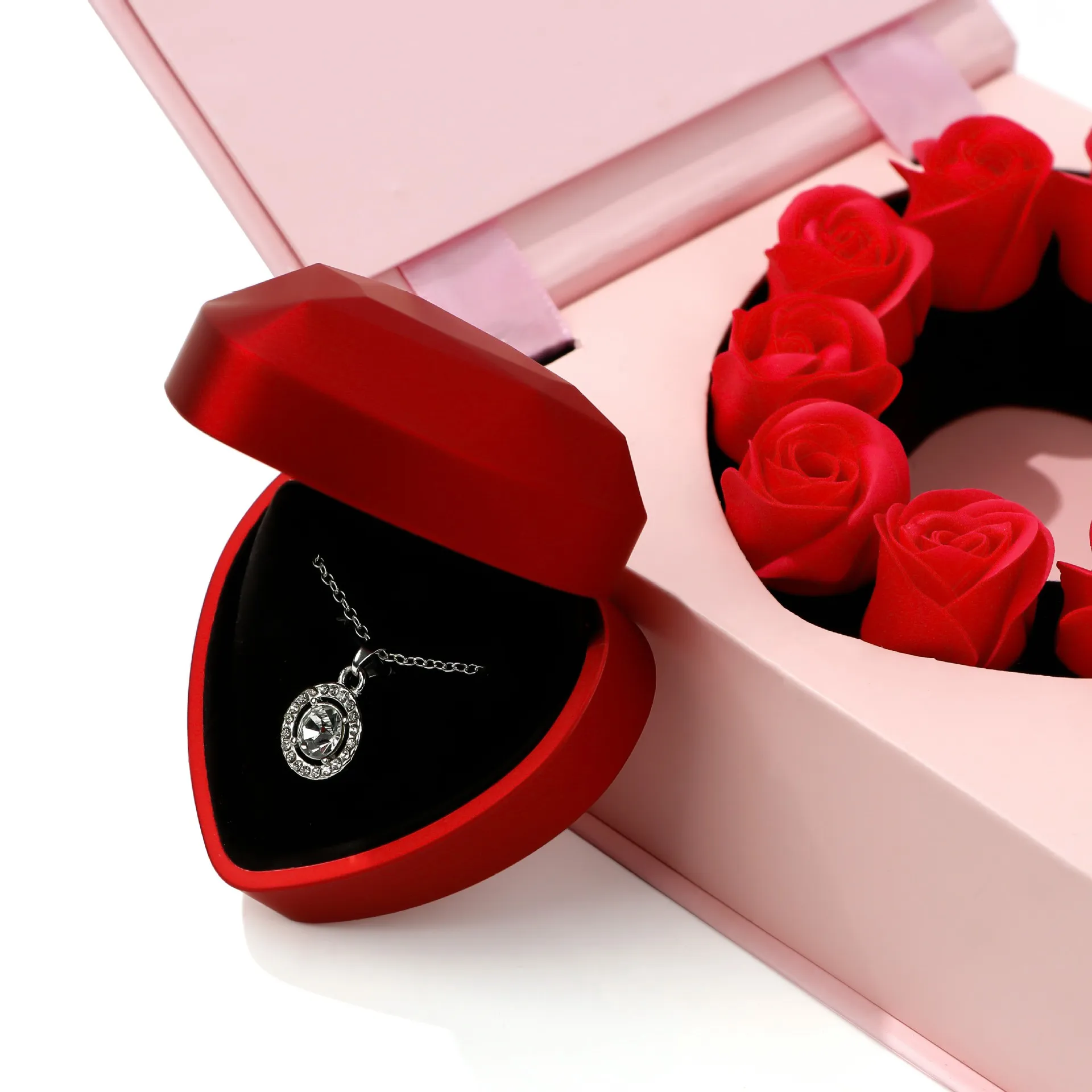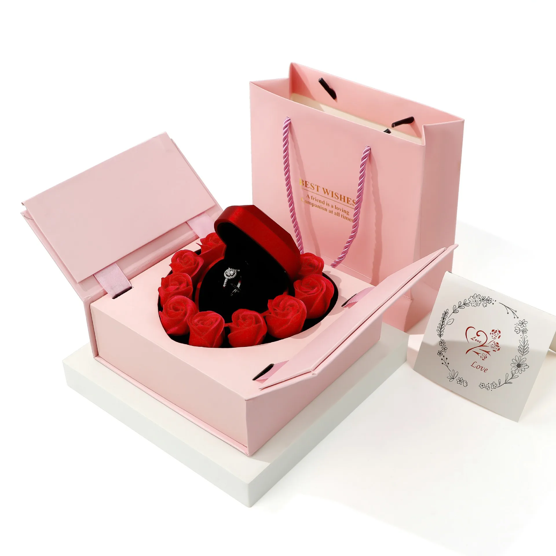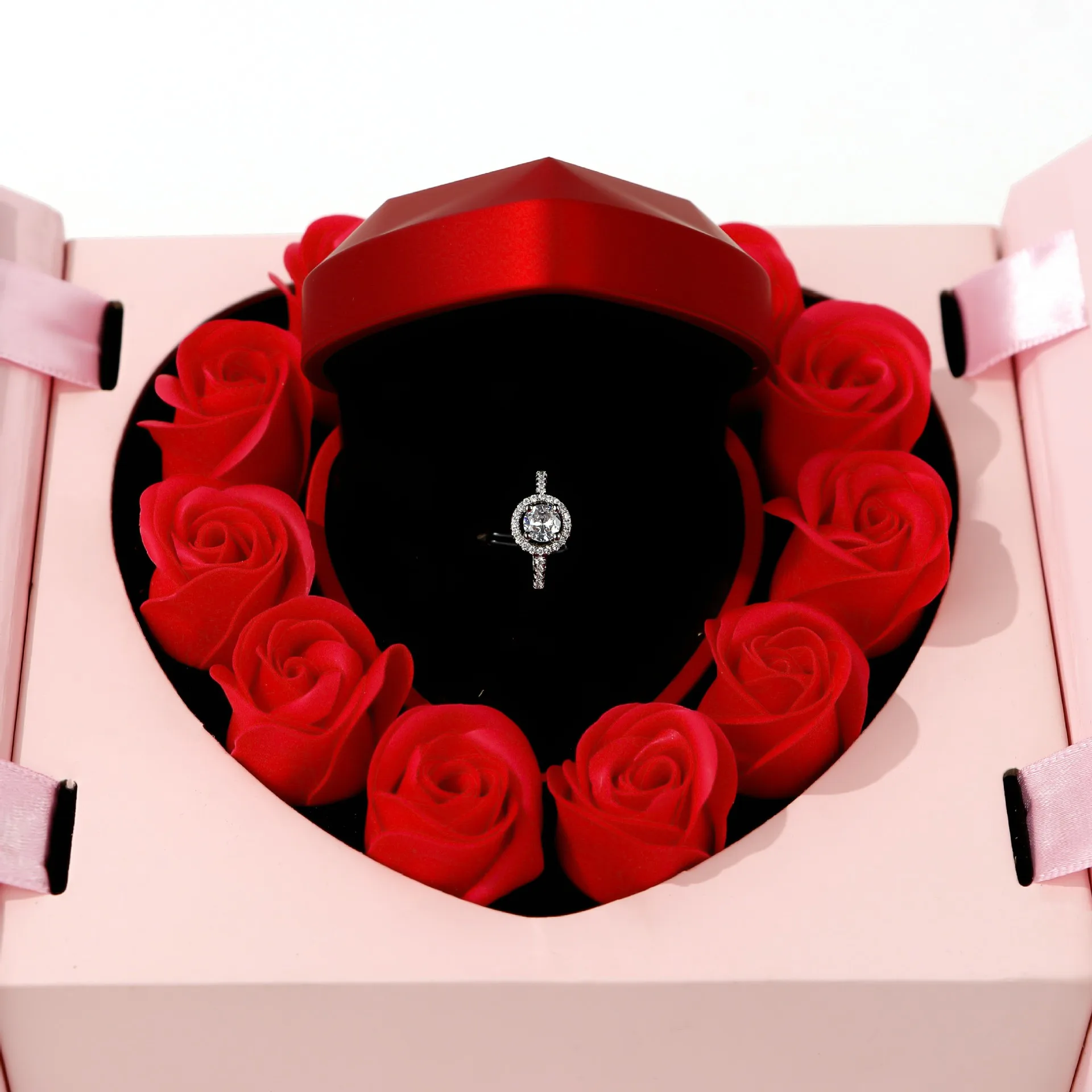 / Rose Pattern Packaging Jewelry Box Eternal Flower Heart-shaped Box Valentine’s Day Gift Box