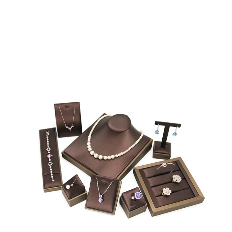 Shipping Custom Store Ring Necklace Stand Flat Suede Metal Stand With Jewelry Display Stand Set