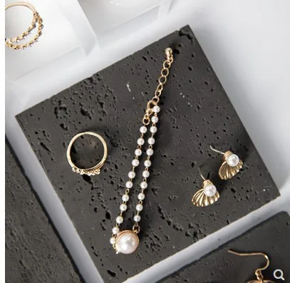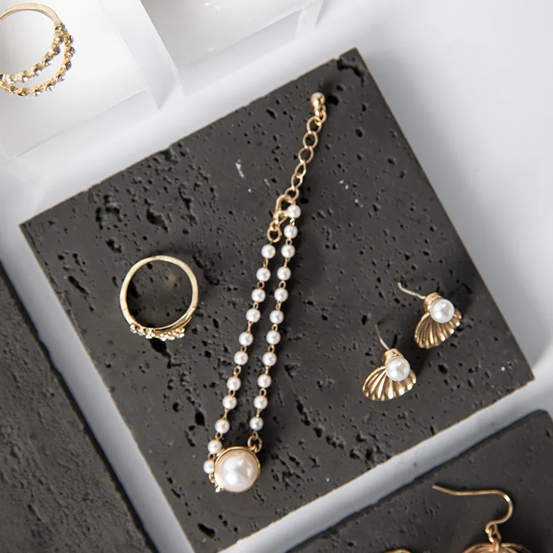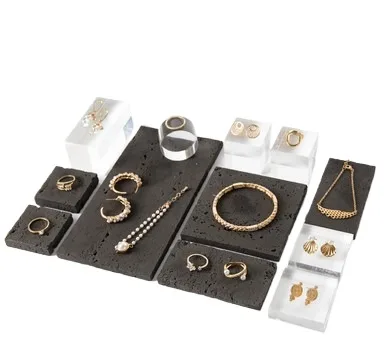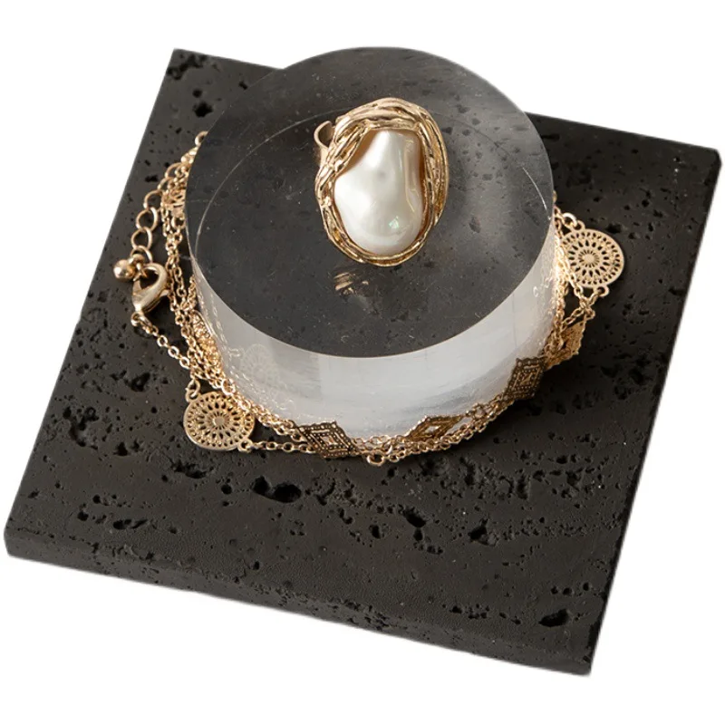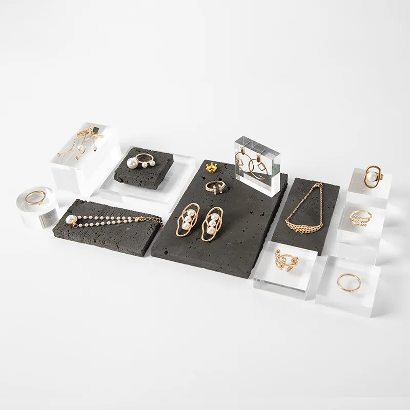 Simple Black Stone Jewelry Display Tray Combination Earrings Ring Necklace Storage Jewelry Display Props Set