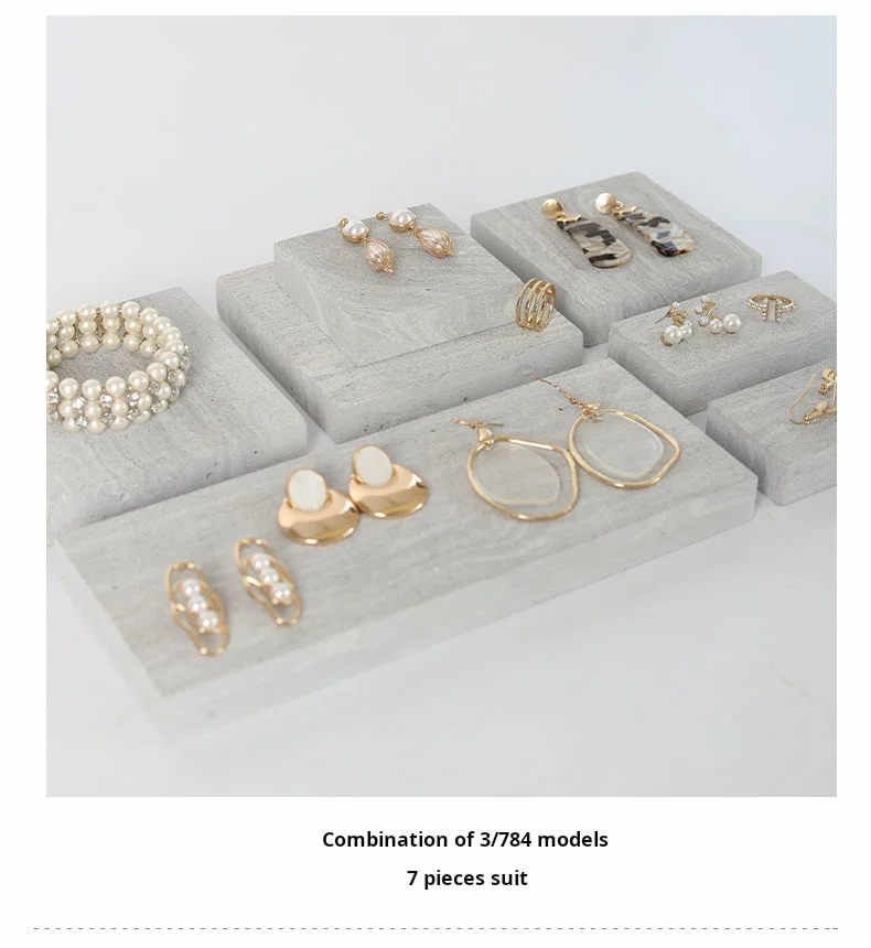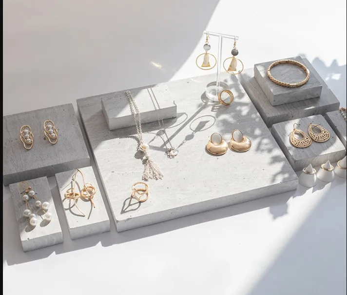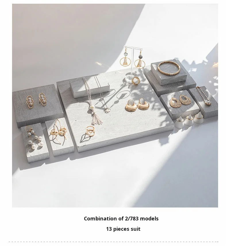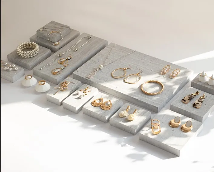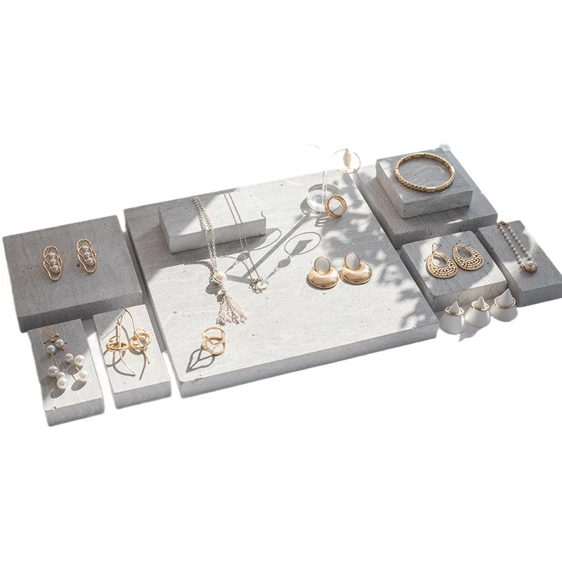 Simple Gray Nordic Geometric Stone Jewelry Display Stand Display Set