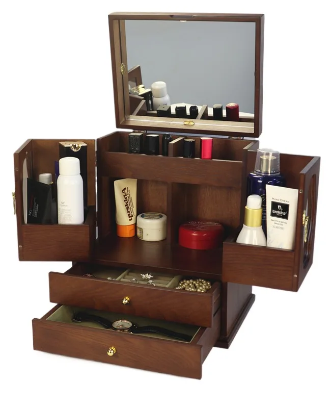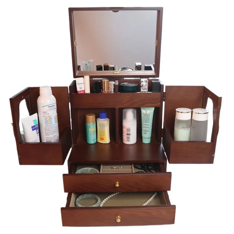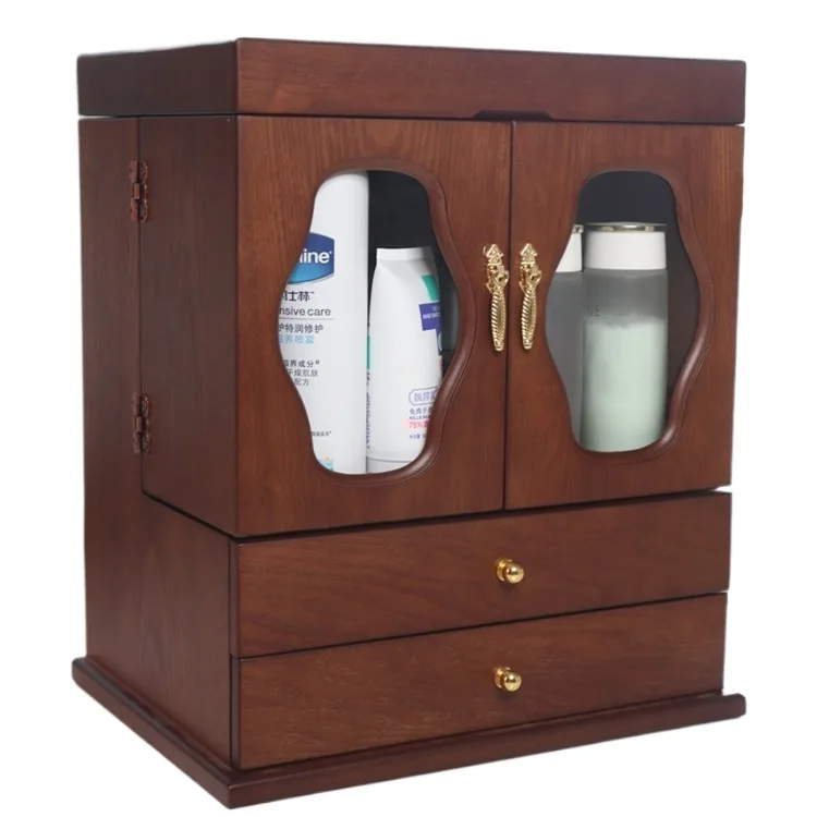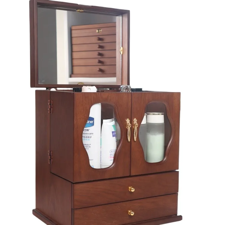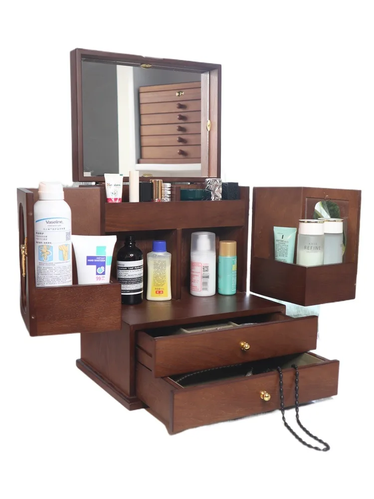 / Solid Wood Cosmetic Storage Box Desktop Shelf Skin Care Product Lipstick Dressing Table Jewelry Box