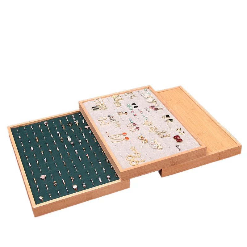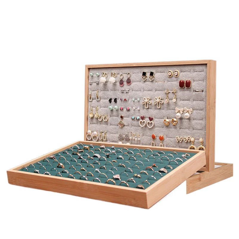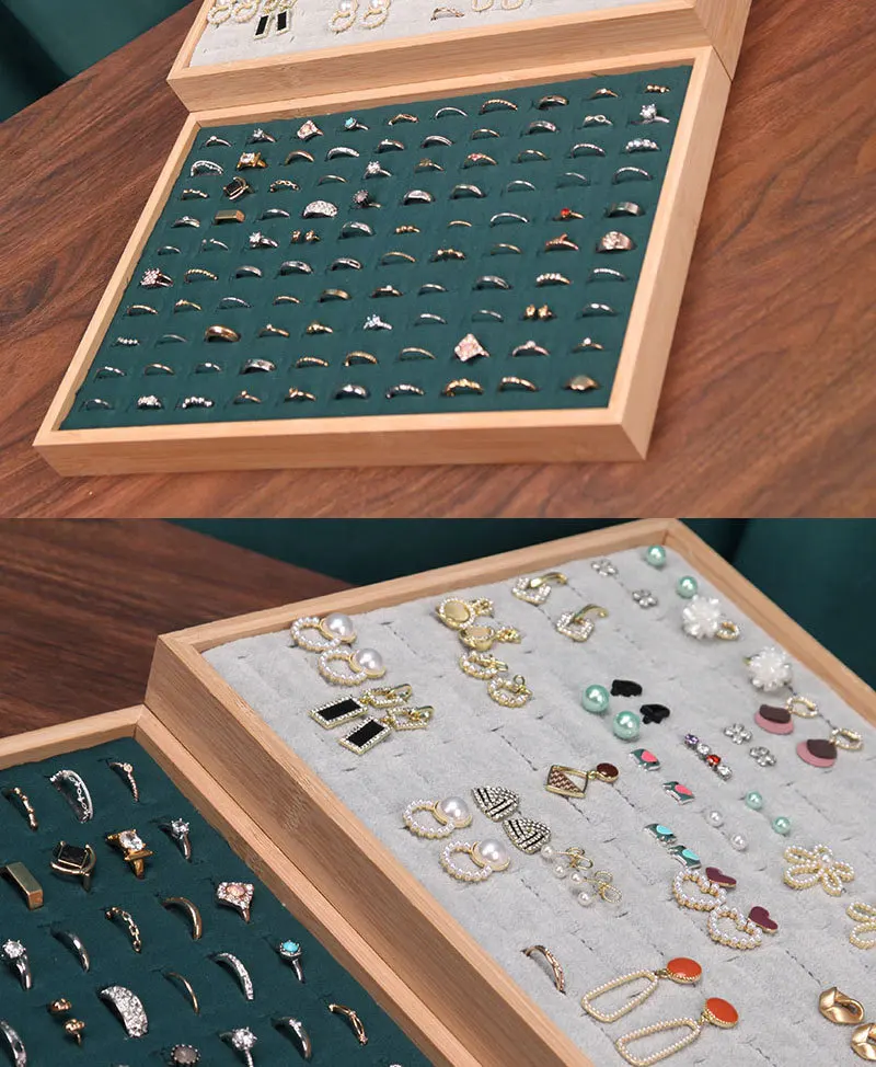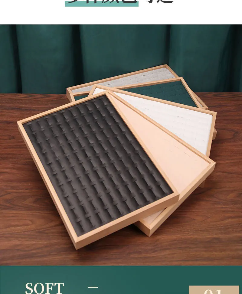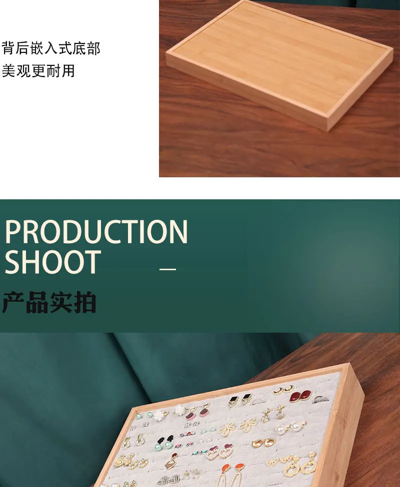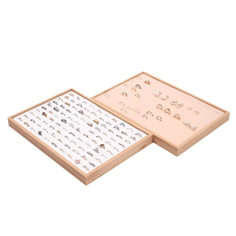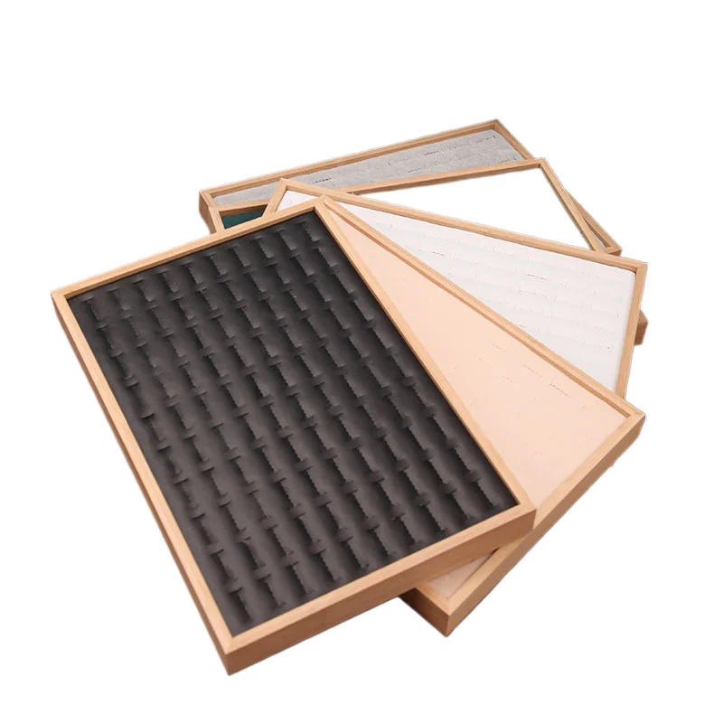 Solid Wood Flannel Hundred-Bit Ring Display Plate Stud Earrings Jewelry Live Tray
