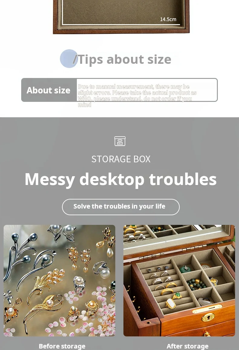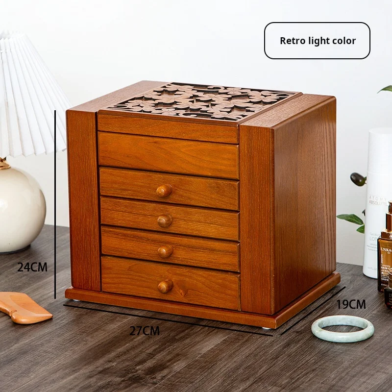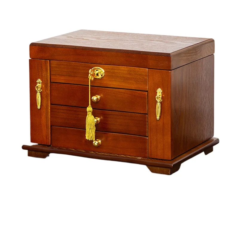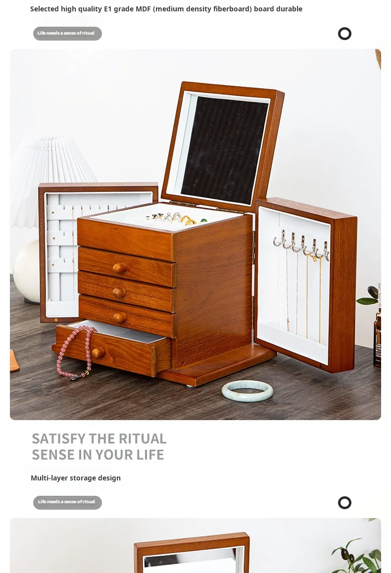 Solid Wood Large-capacity Three-layer Earring Jewelry Storage Box with Lid and Lock