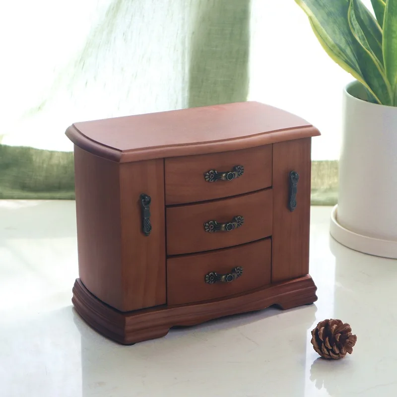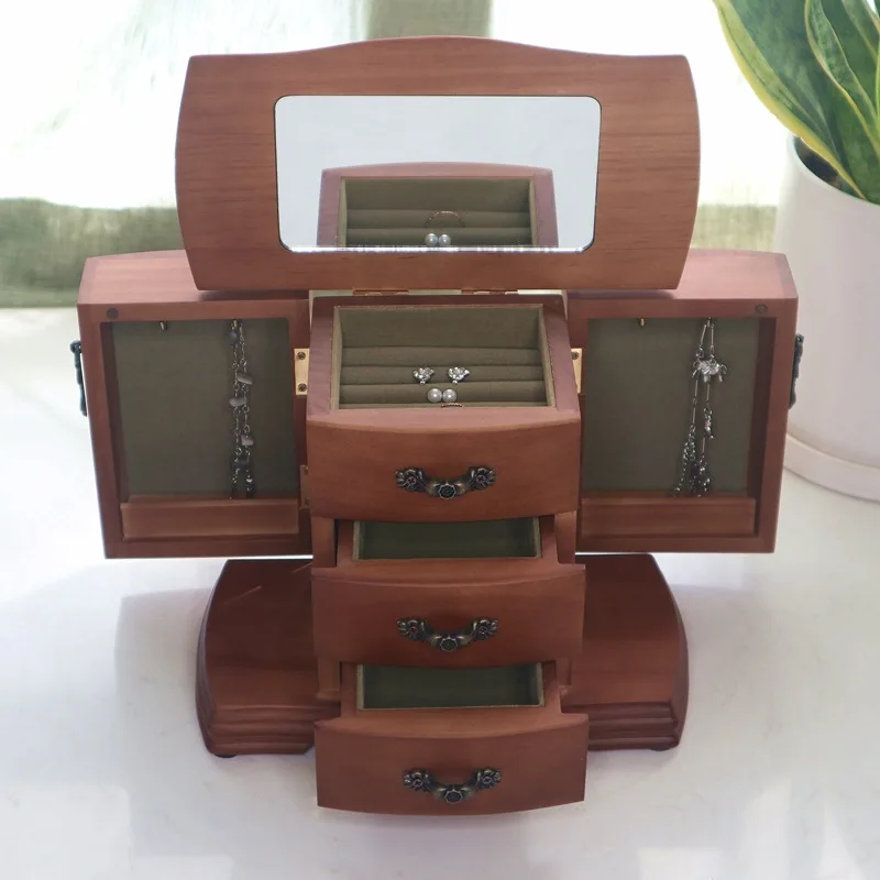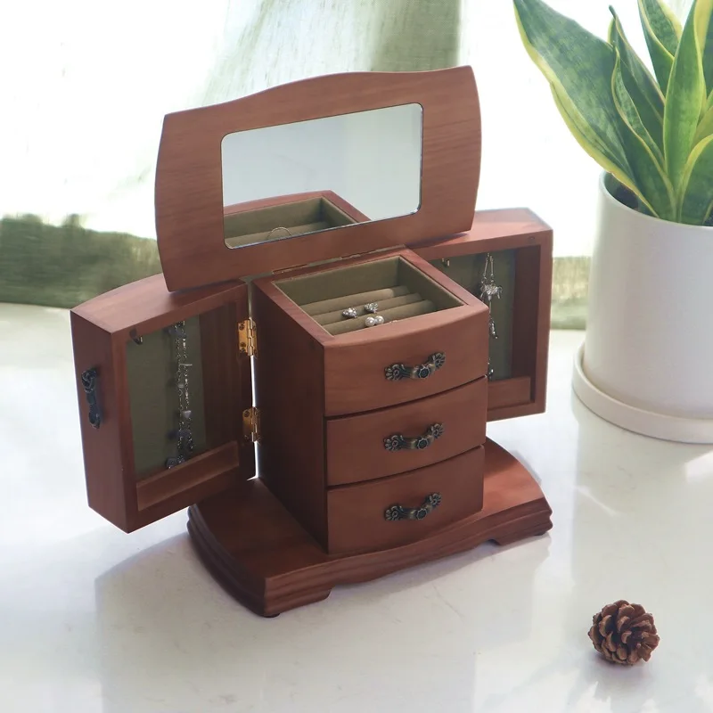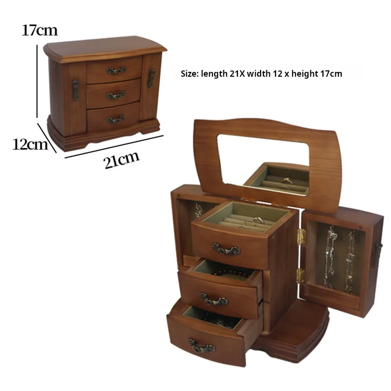 / Solid Wood Storage Box with Mirror Chinese Style Double Door Jewelry Box Multi-functional Bracelet Necklace Jewelry Box