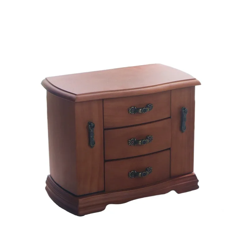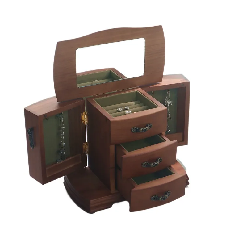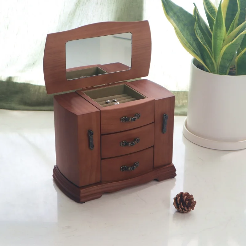 Solid Wood Storage Box with Mirror Chinese Style Double Door Jewelry Box Multi-functional Bracelet Necklace Jewelry Box
