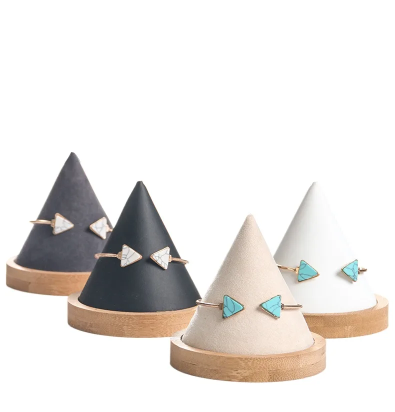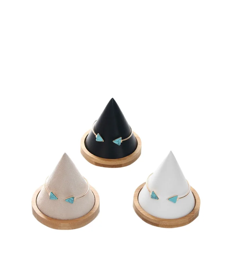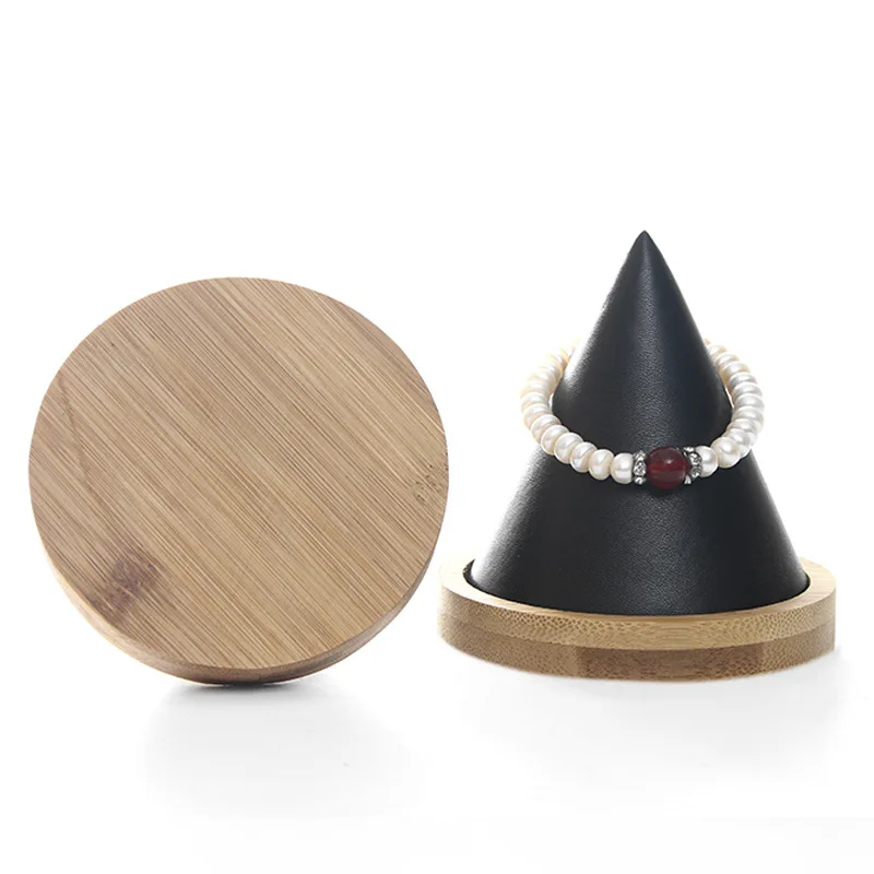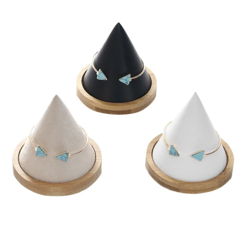 Solid Wood White Black Pu Velvet Watch Bracelet Holder Jewelry Conical Bracelet Display Stand