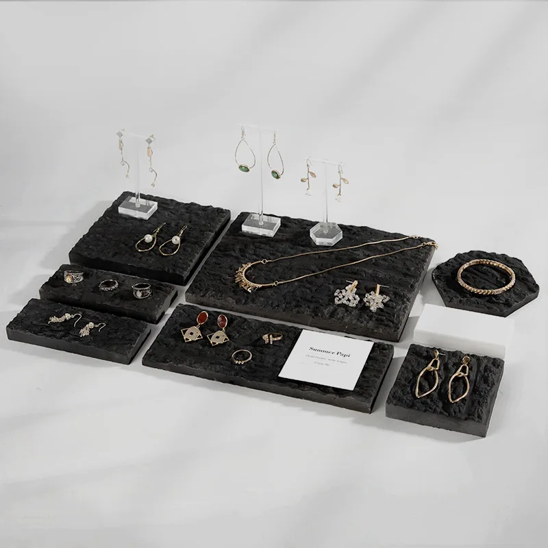 Spot Geometric Black Plaster Earrings Display Tray Jewelry Jewelry Display Stand Set