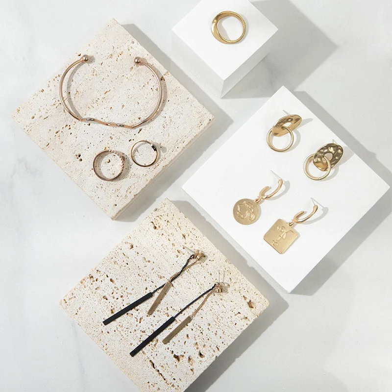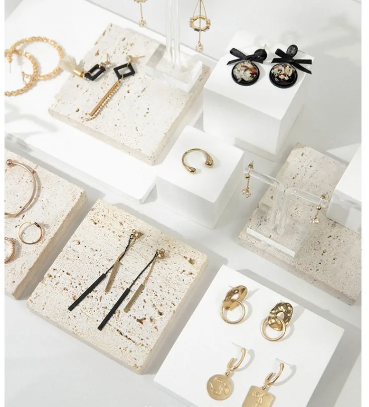 Spot Marble Natural Stone Gypsum Acrylic Jewelry Jewelry Storage Display Stand Display Set
