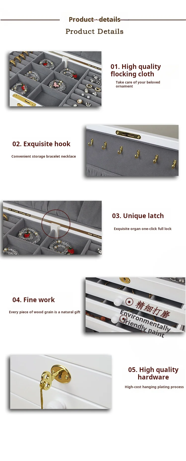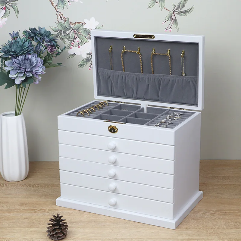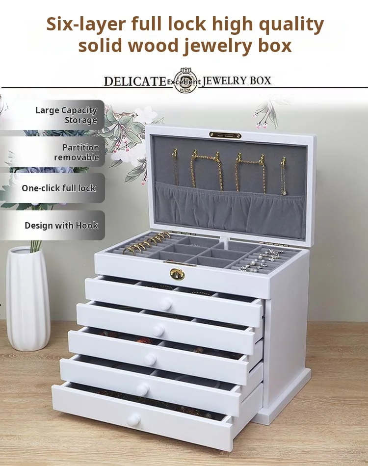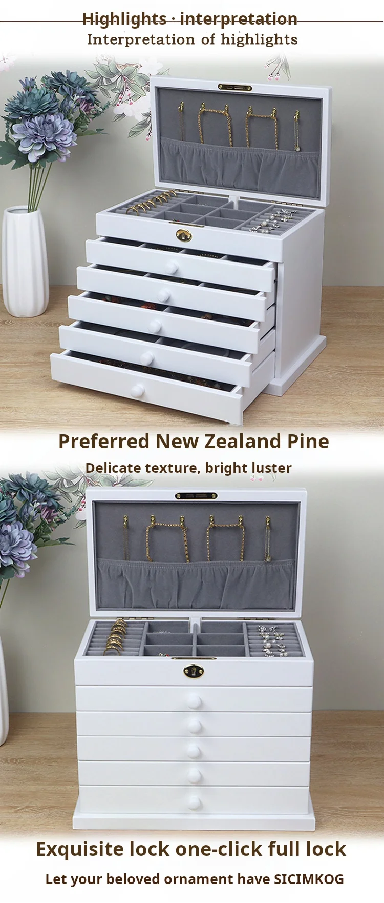 / White European Style Solid Wood Jewelry Box with Lock Large Capacity Jewelry Storage Box