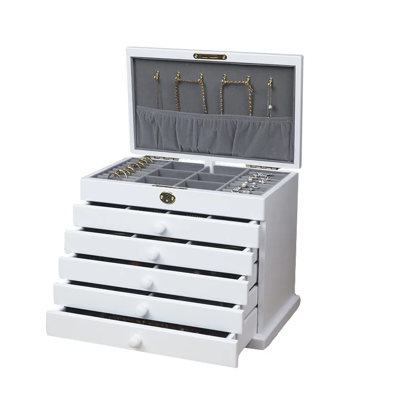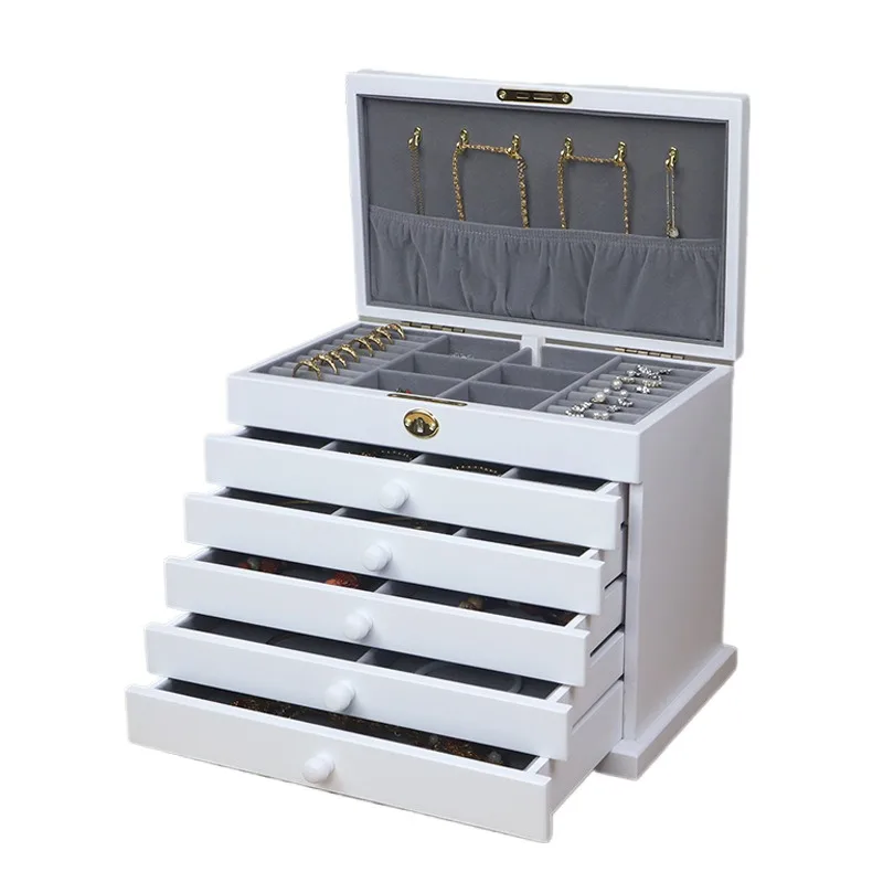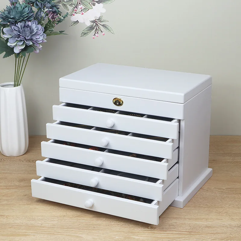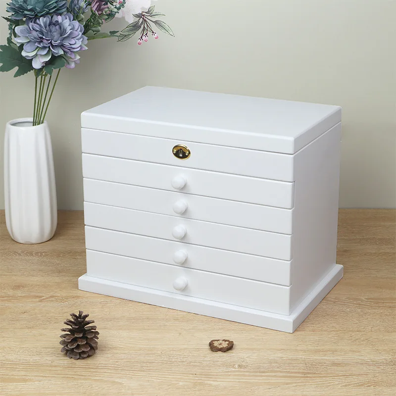 / White European Style Solid Wood Jewelry Box with Lock Large Capacity Jewelry Storage Box