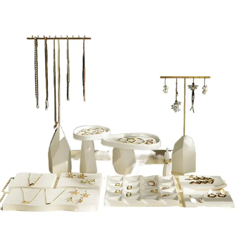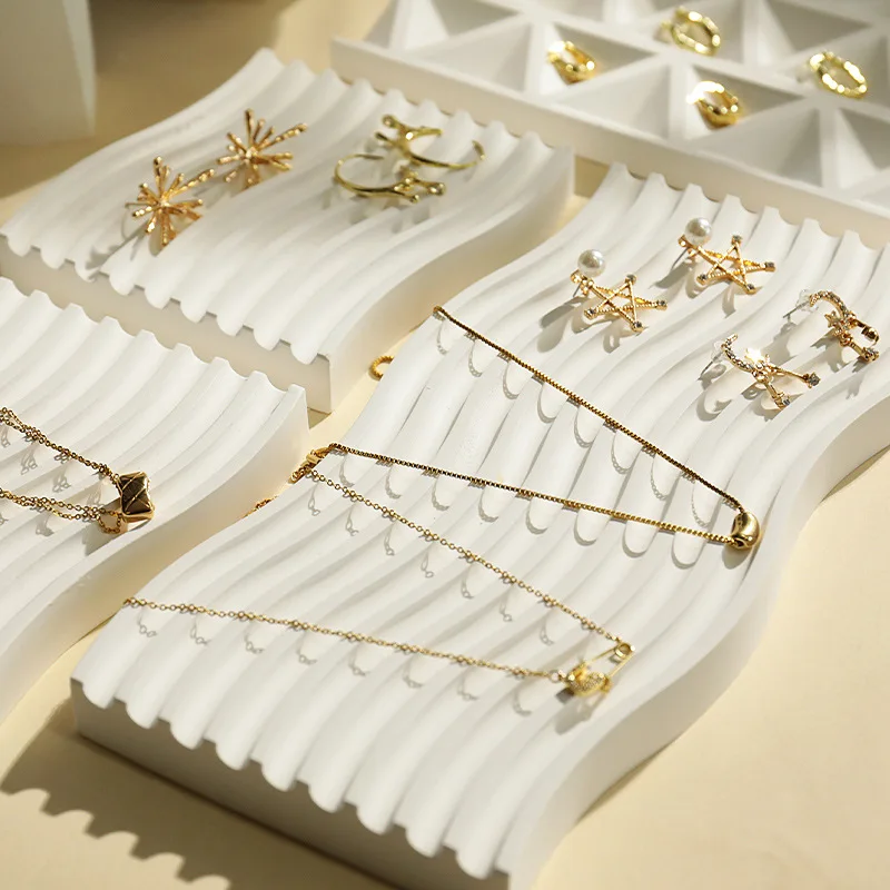 White Irregular Plaster T-Shaped Jewelry Display Stand Earring Rack Ring Storage Tray Accessories Display