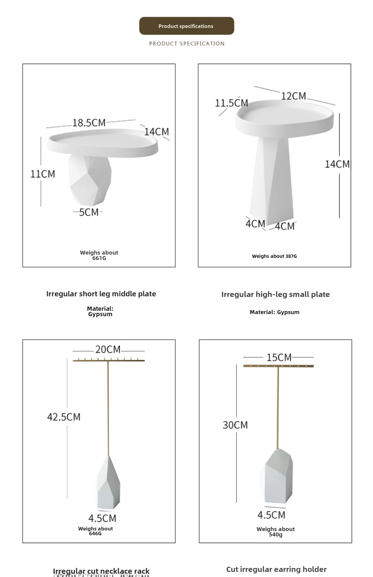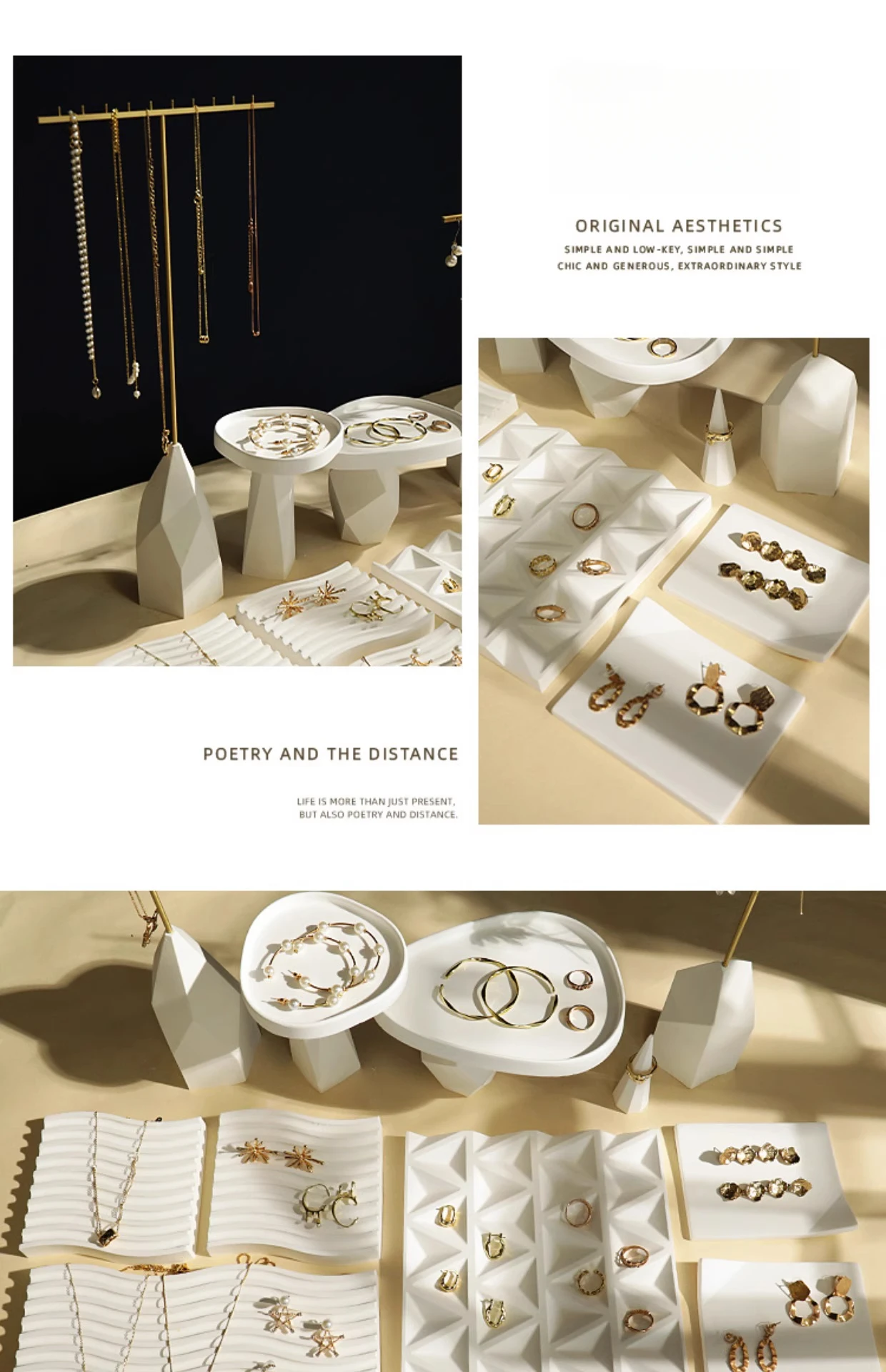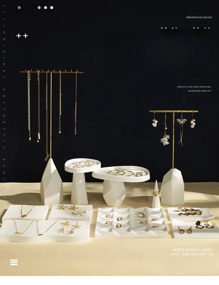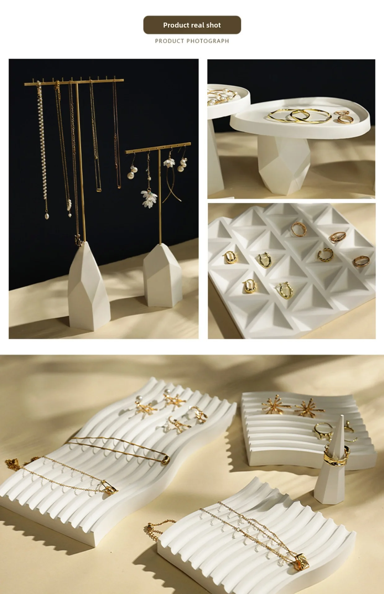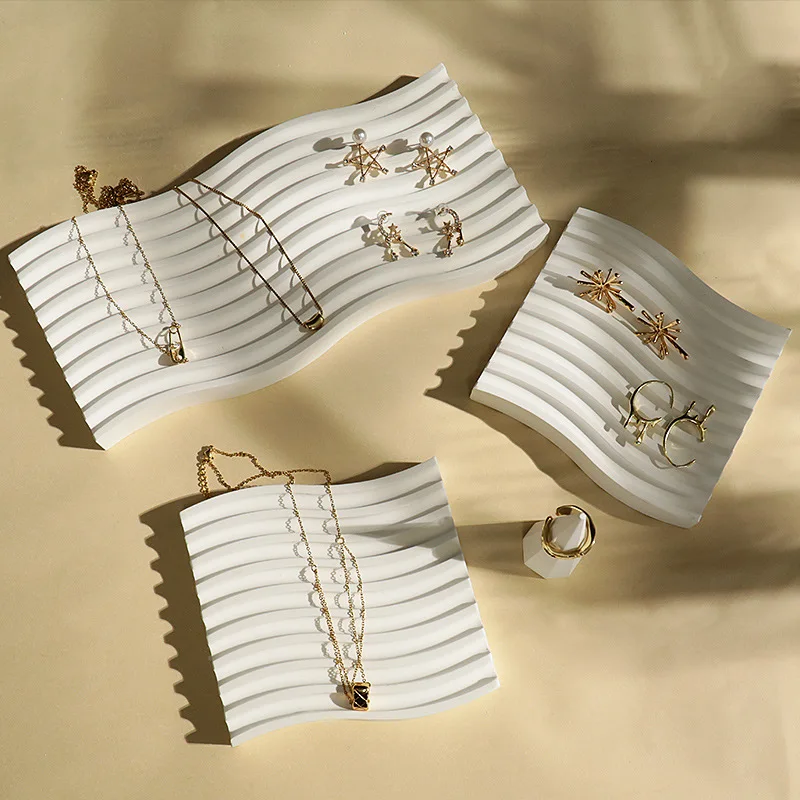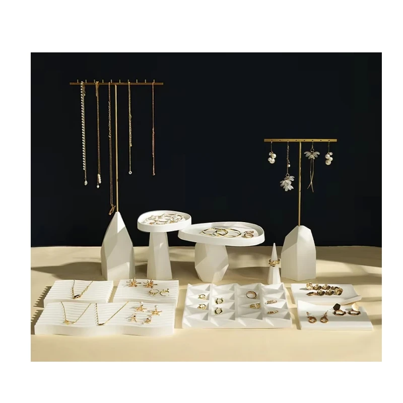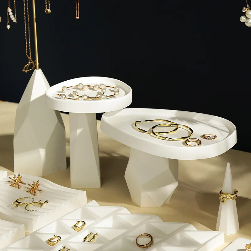 / White Irregular Plaster T-Shaped Jewelry Display Stand Earring Rack Ring Storage Tray Accessories Display