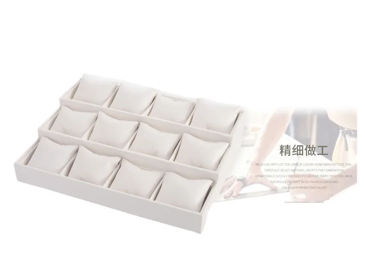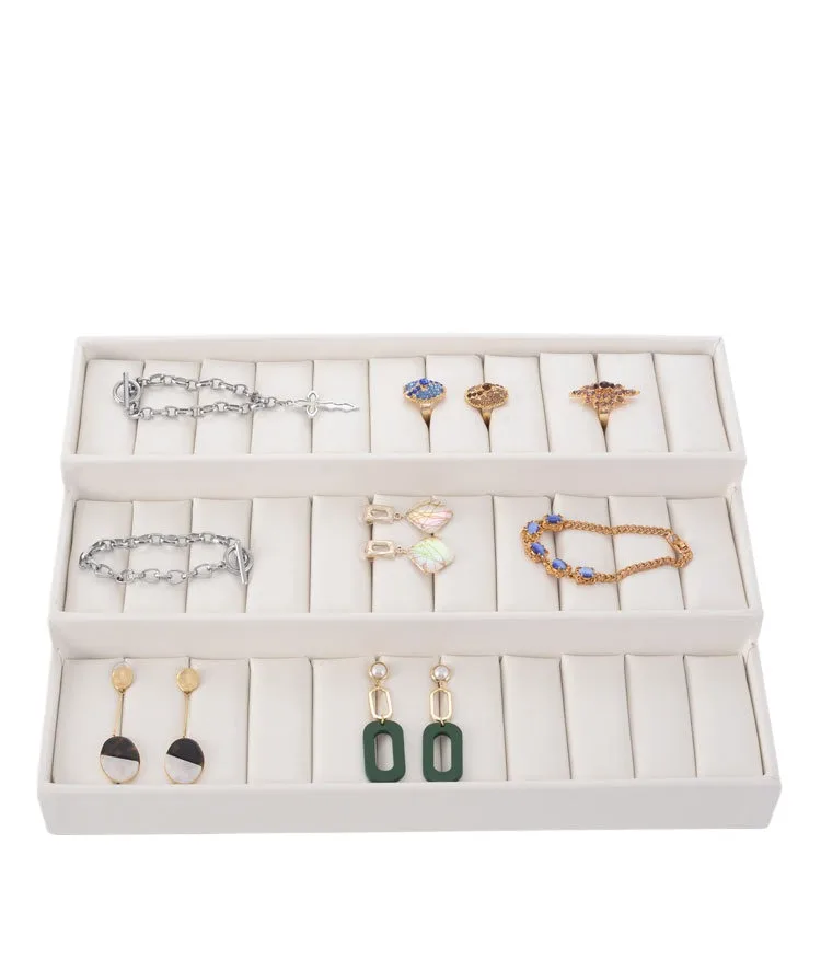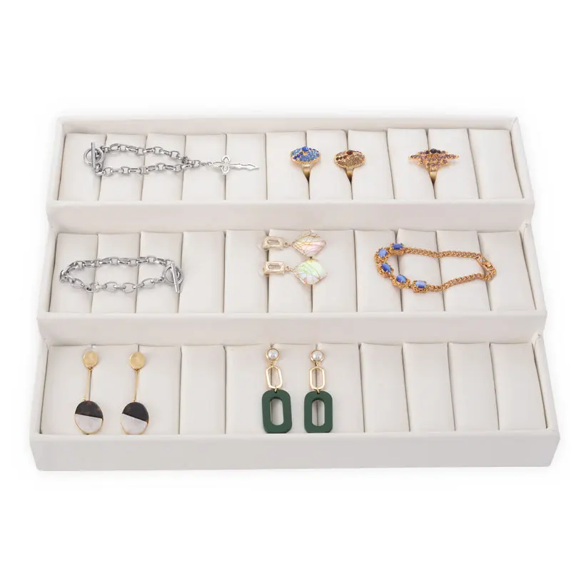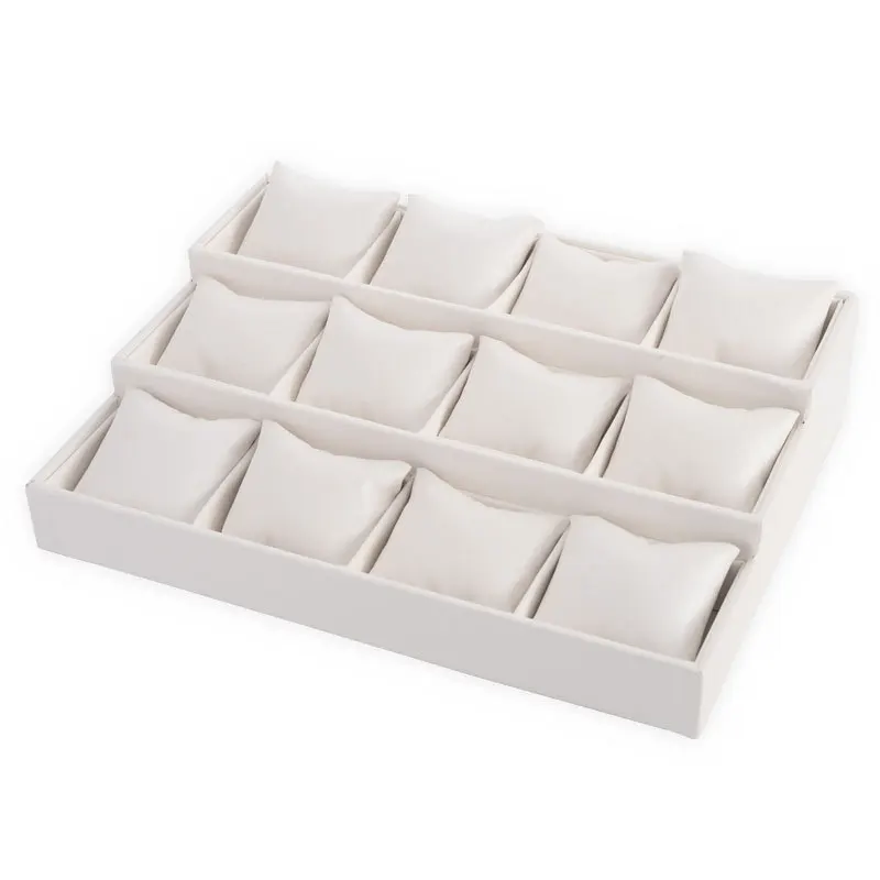 White Large Three-layer Display Tray Pu Jewelry Tray Watch Bracelet Ring Jewelry Display Stand