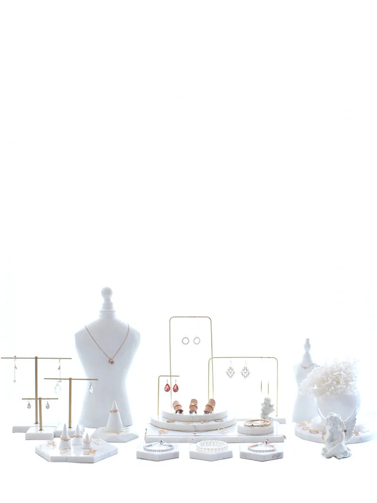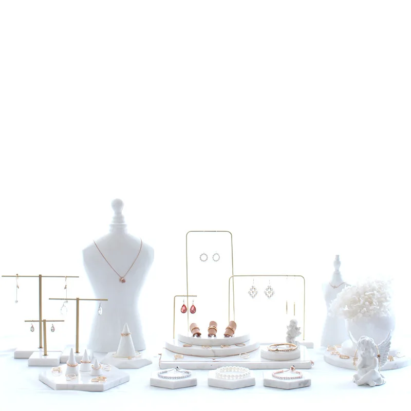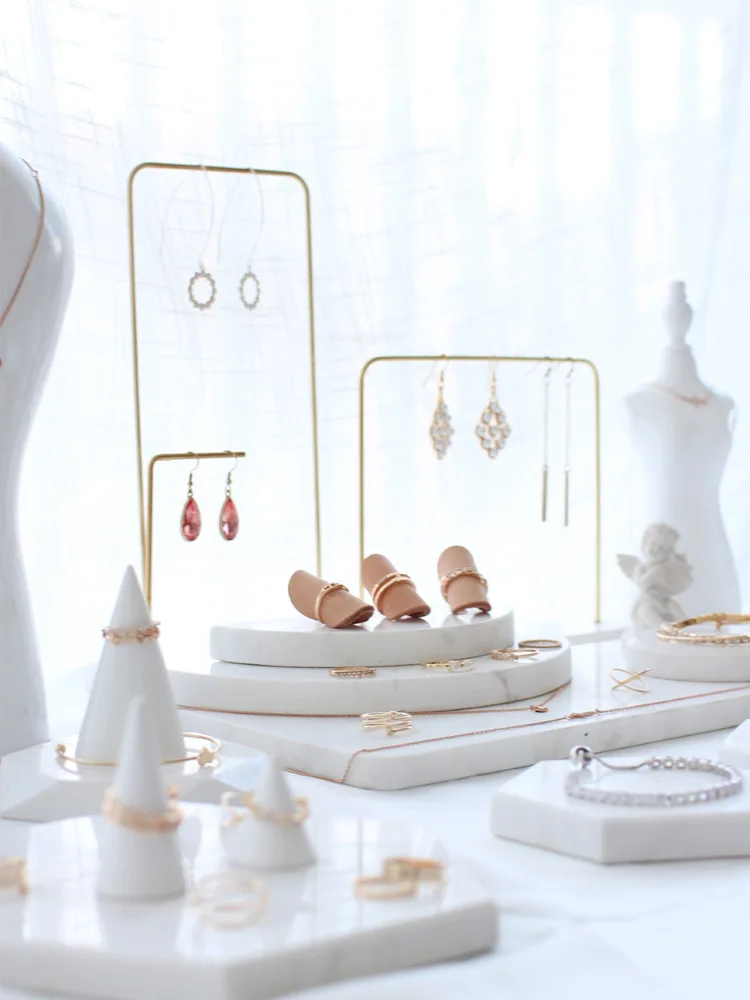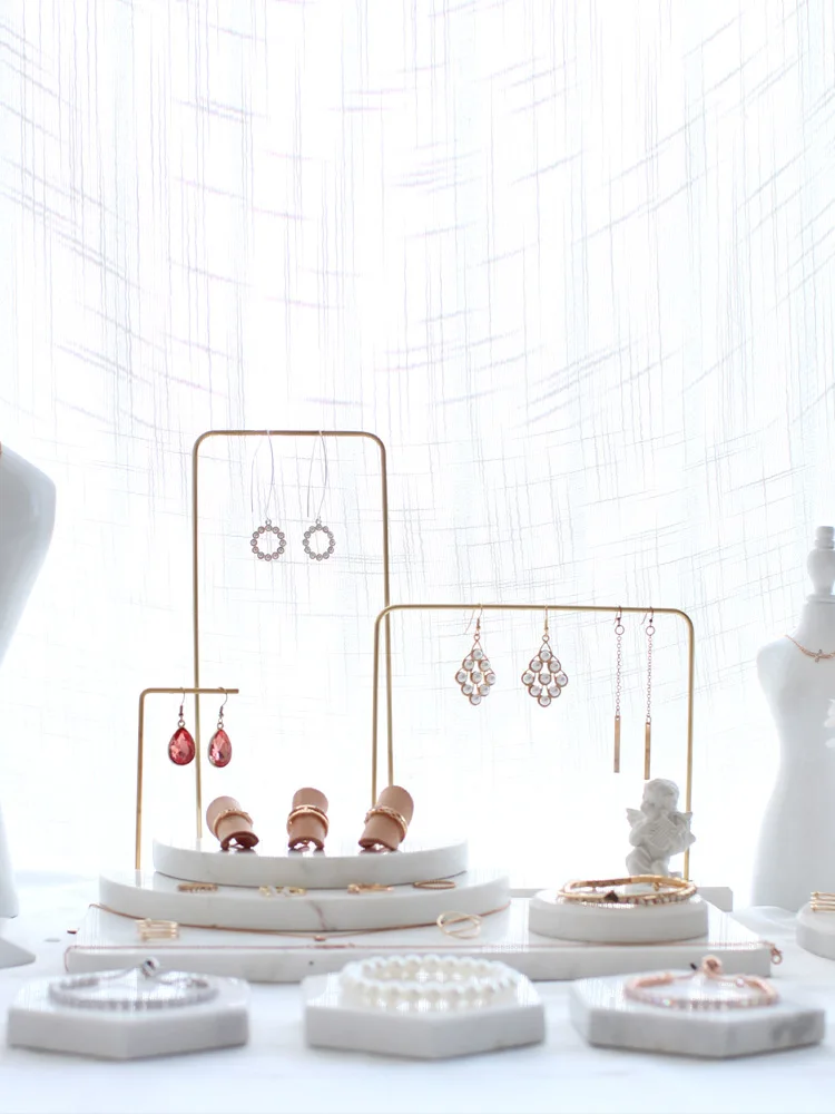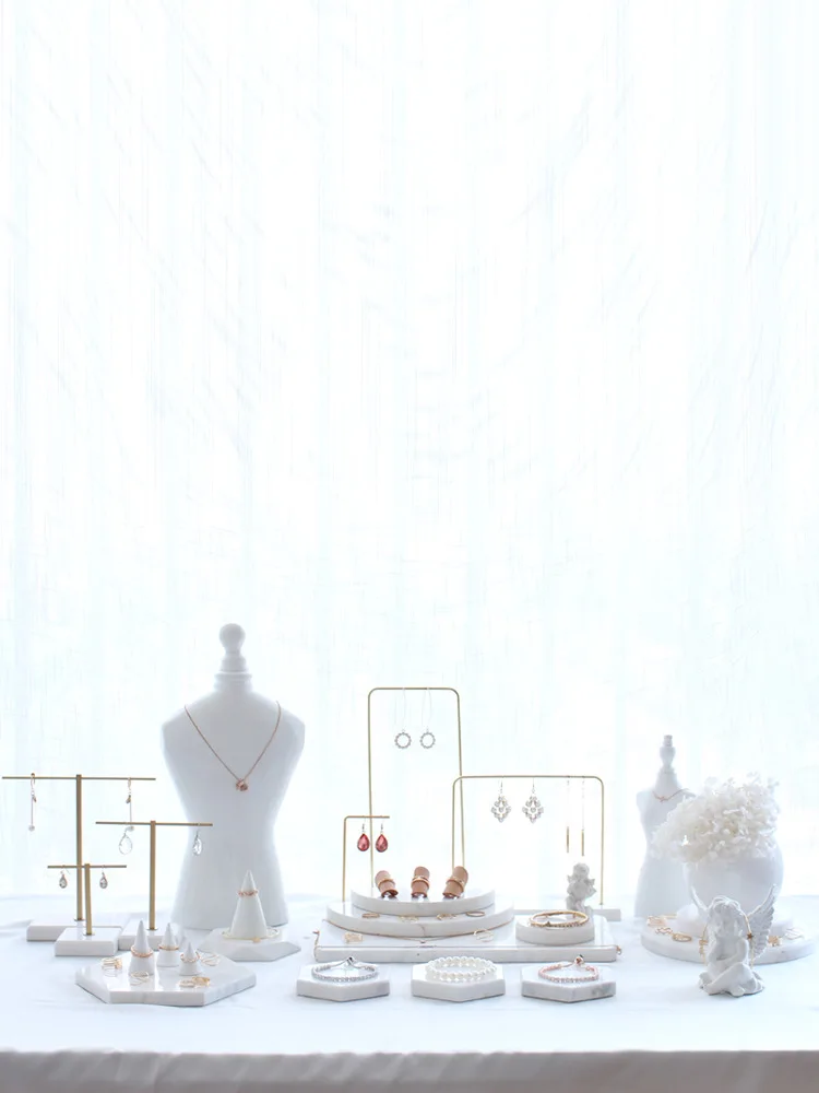 / White Marble Jewelry Display Display Jewelry Storage Set Geometric Tray Display Set