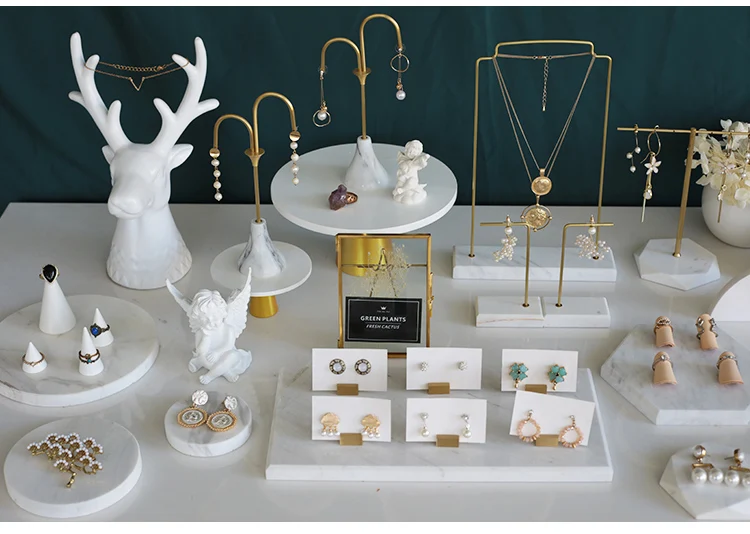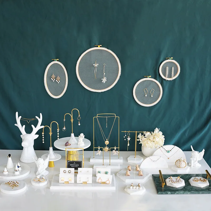 / White Metal Jewelry Tray Ornament Decoration Props Jewelry Display Stand Set