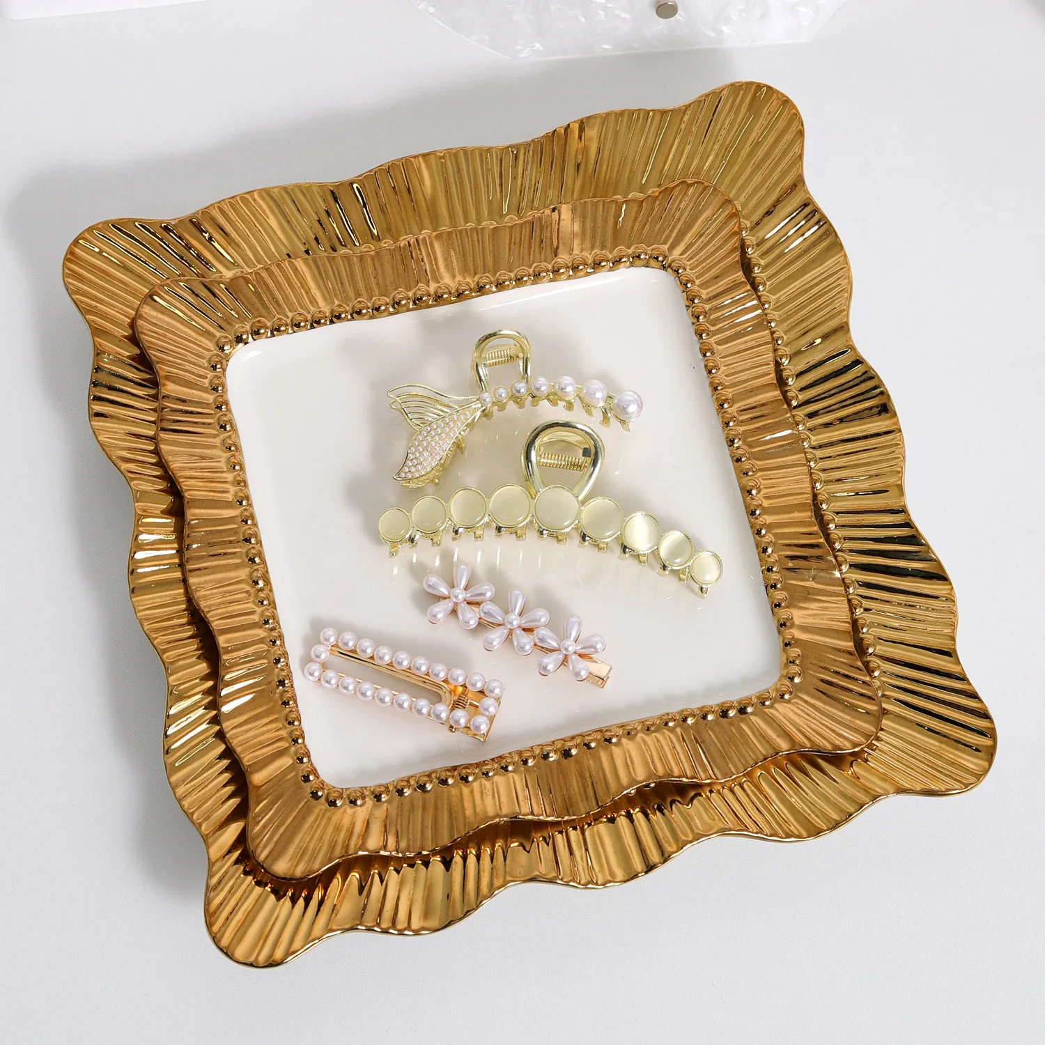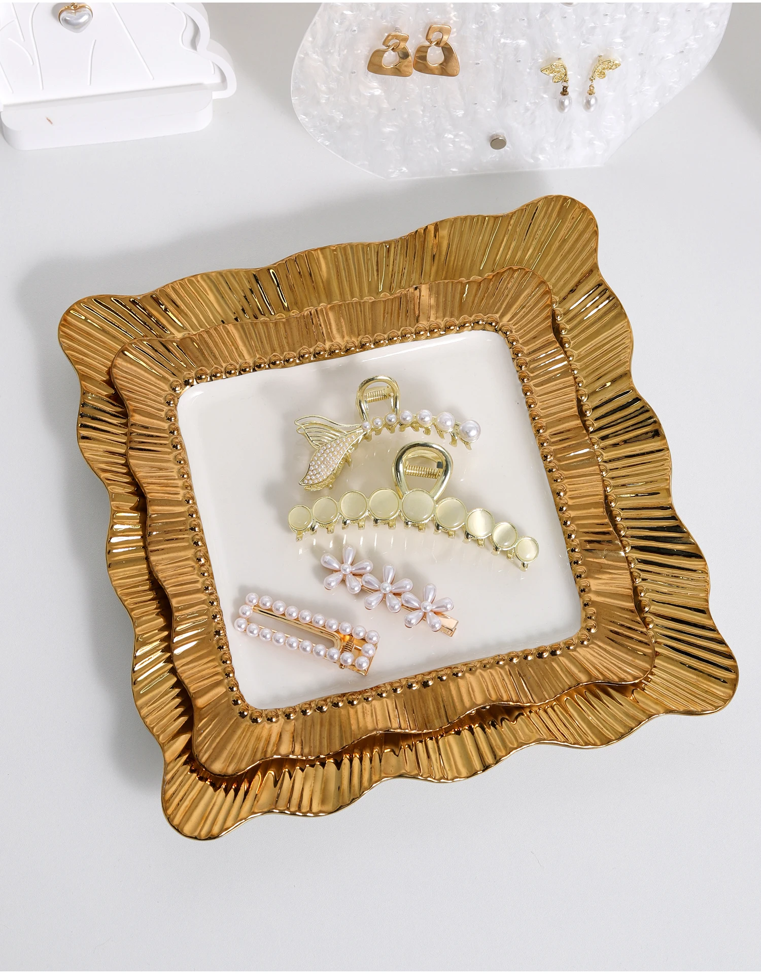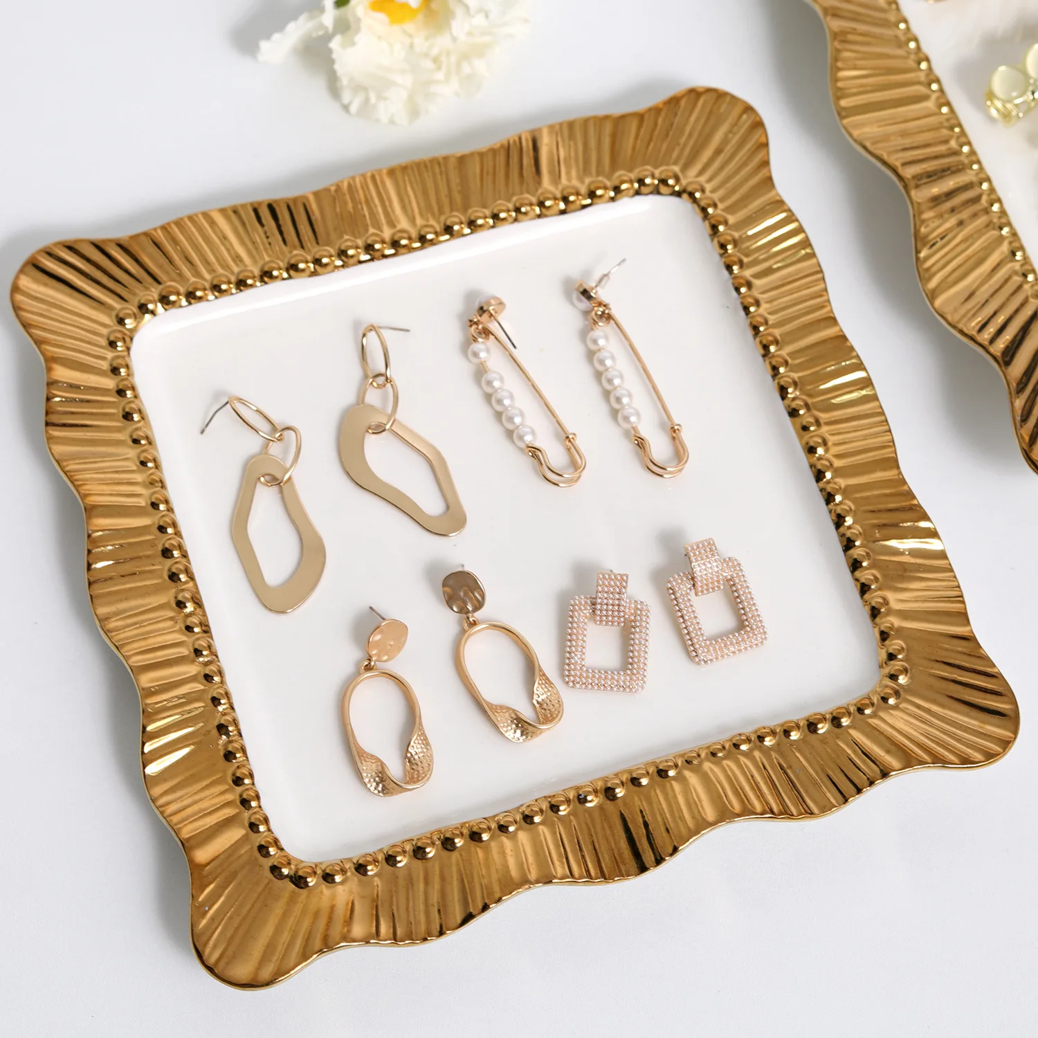 / Wholesale Ceramic Ring Jewelry Tray with Gilt Edging Storage Dresser Dish for Trinkets Container
