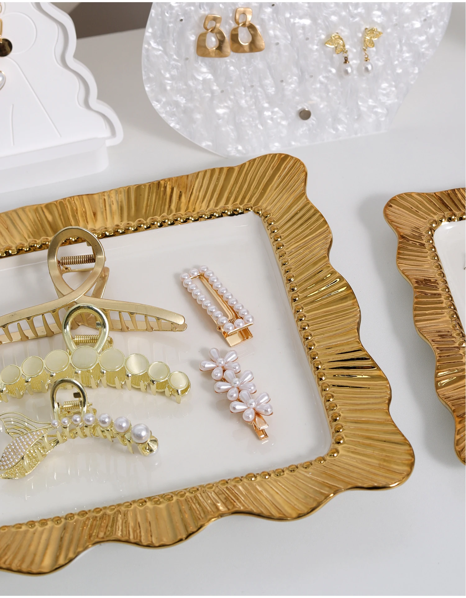 Wholesale Ceramic Ring Jewelry Tray with Gilt Edging Storage Dresser Dish for Trinkets Container