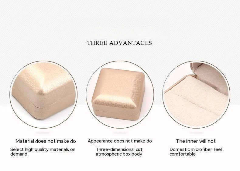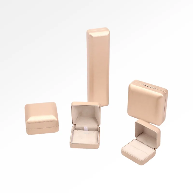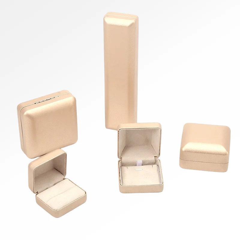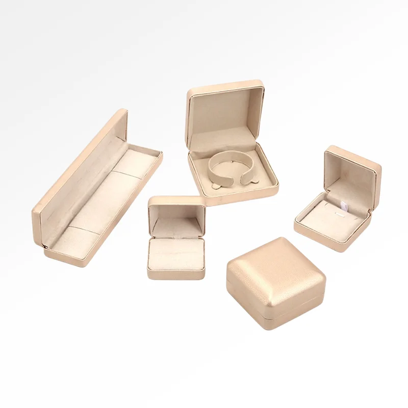 / Wholesale Luxury PU Leather Jewelry Boxes Custom Logo Printed Hard Case for Necklaces Rings and Bracelets in Champagne Color