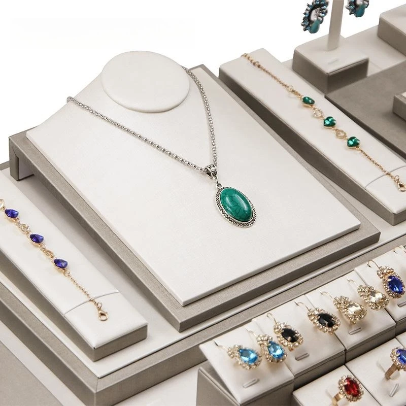 Wholesale PU Leather Ring Necklace Pendant Earring Bracelet Display Stand Jewelry Display Set