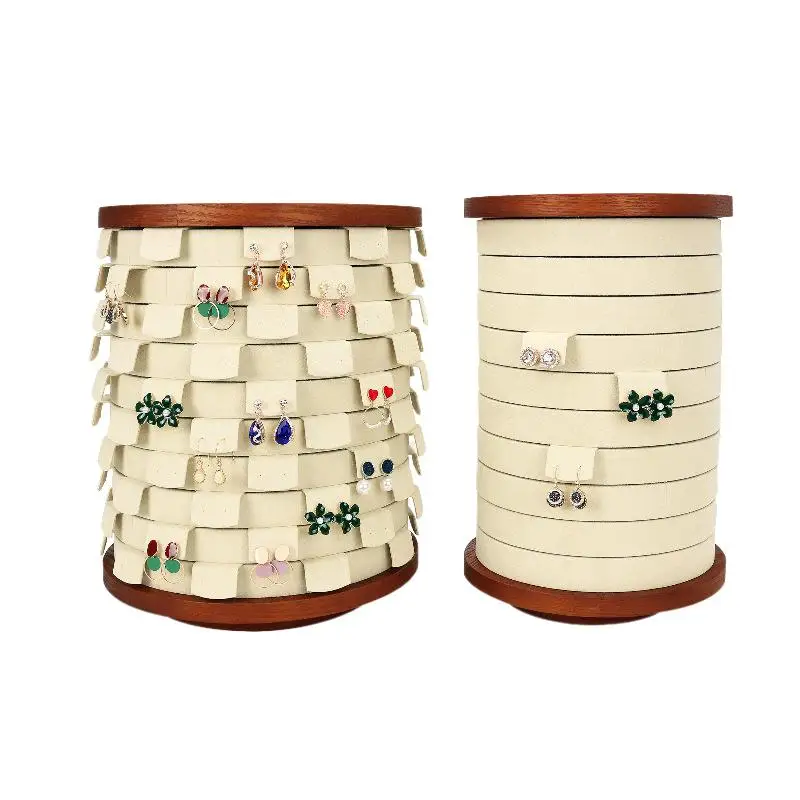 Wooden Microfiber Rotating Jewelry Display Stand for Earrings and Necklaces