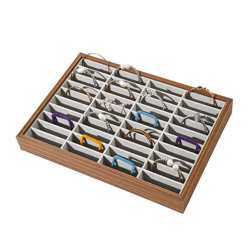 Wooden Walnut Grain 40-bit Ring Earring Storage Tray Bracelet Bracelet Jewelry Display Tray